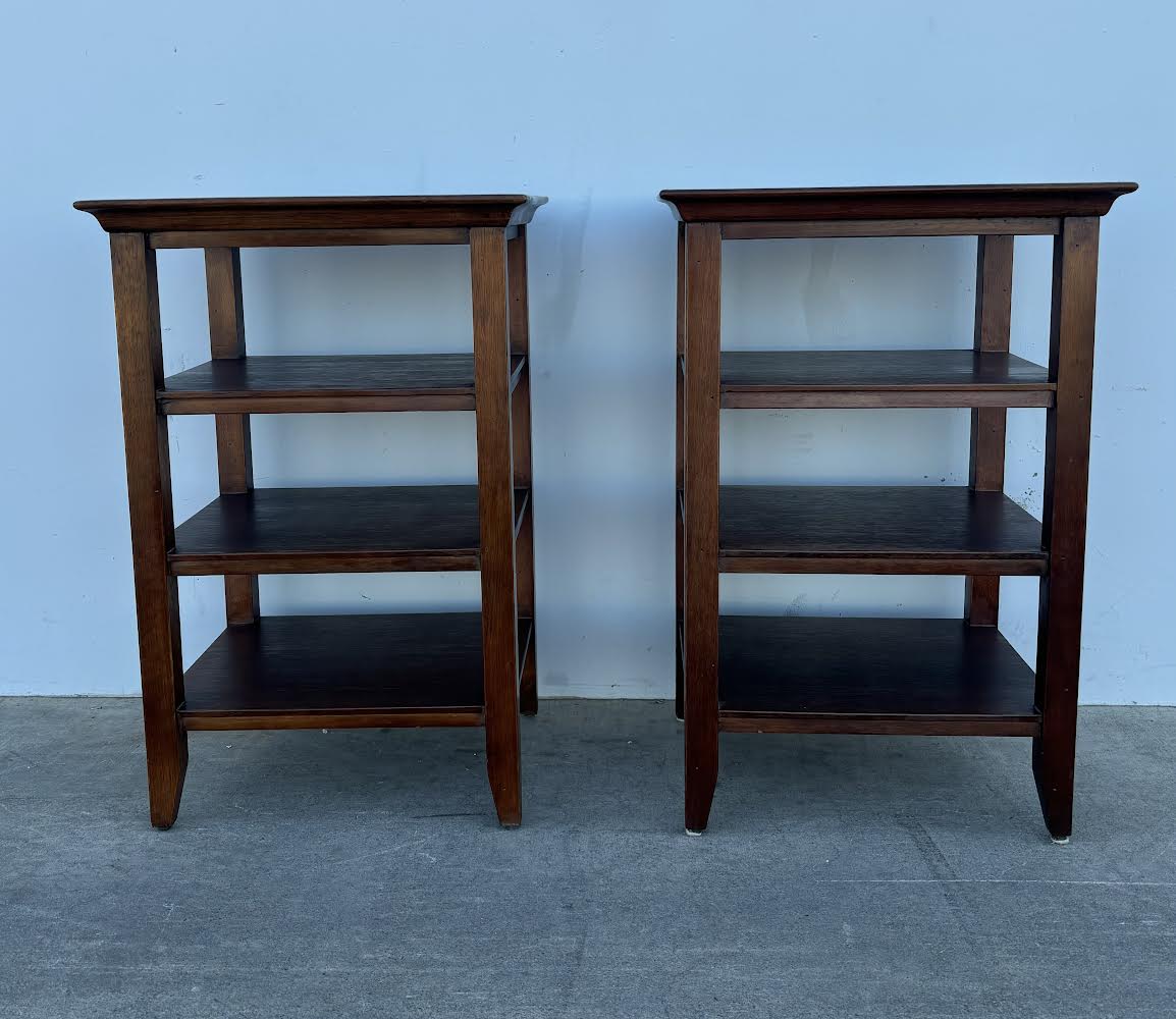 Hello we are selling a 2 Side Tables with Shelves by Eddie Bauer ,it is in good condition.