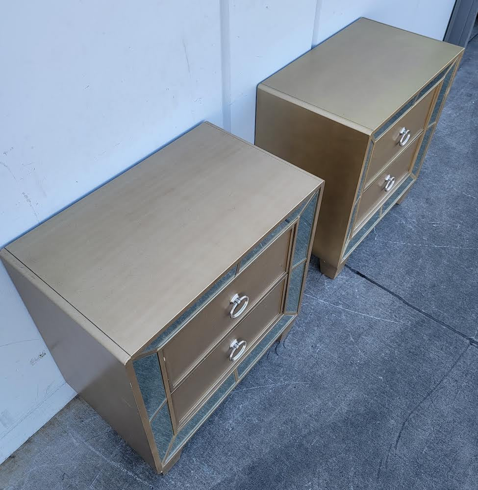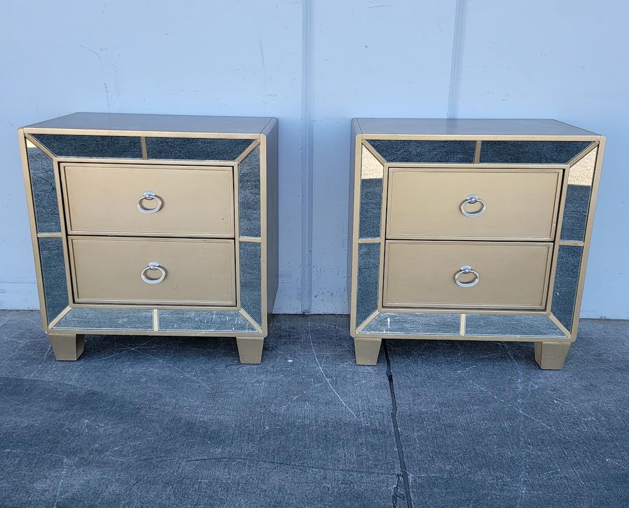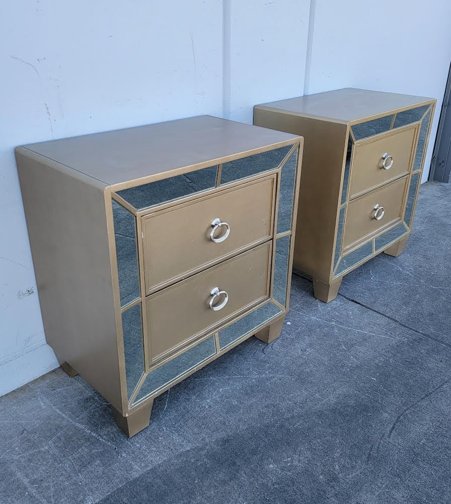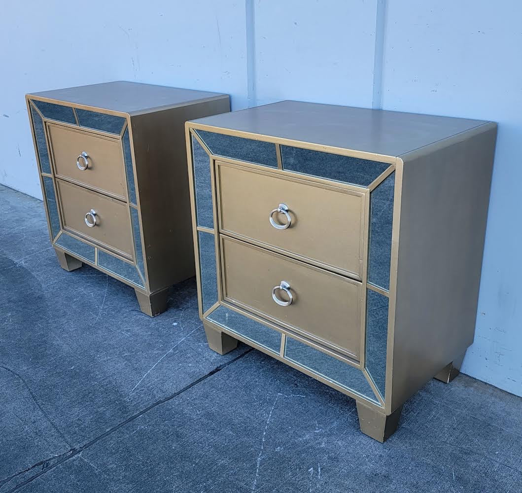 Hello we are selling a Abbyson living chateau goldtone wood mirrored 2-drawer nightstands (2 available), it is in good condition.