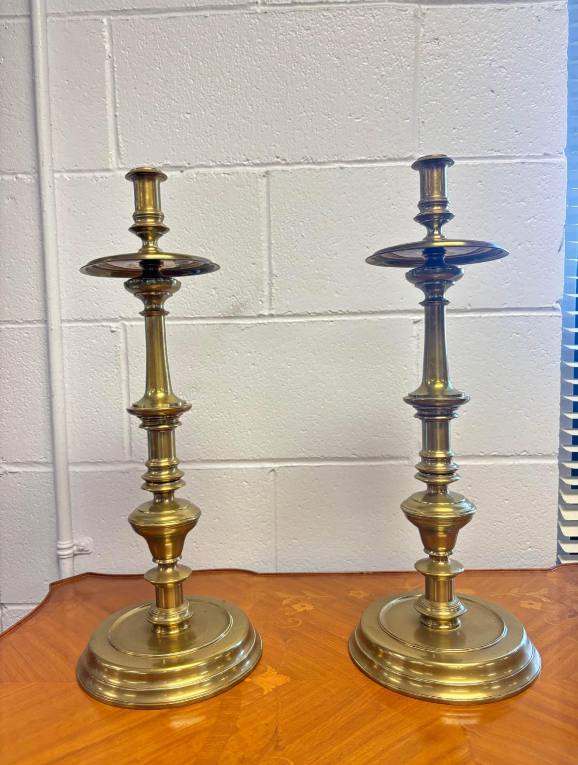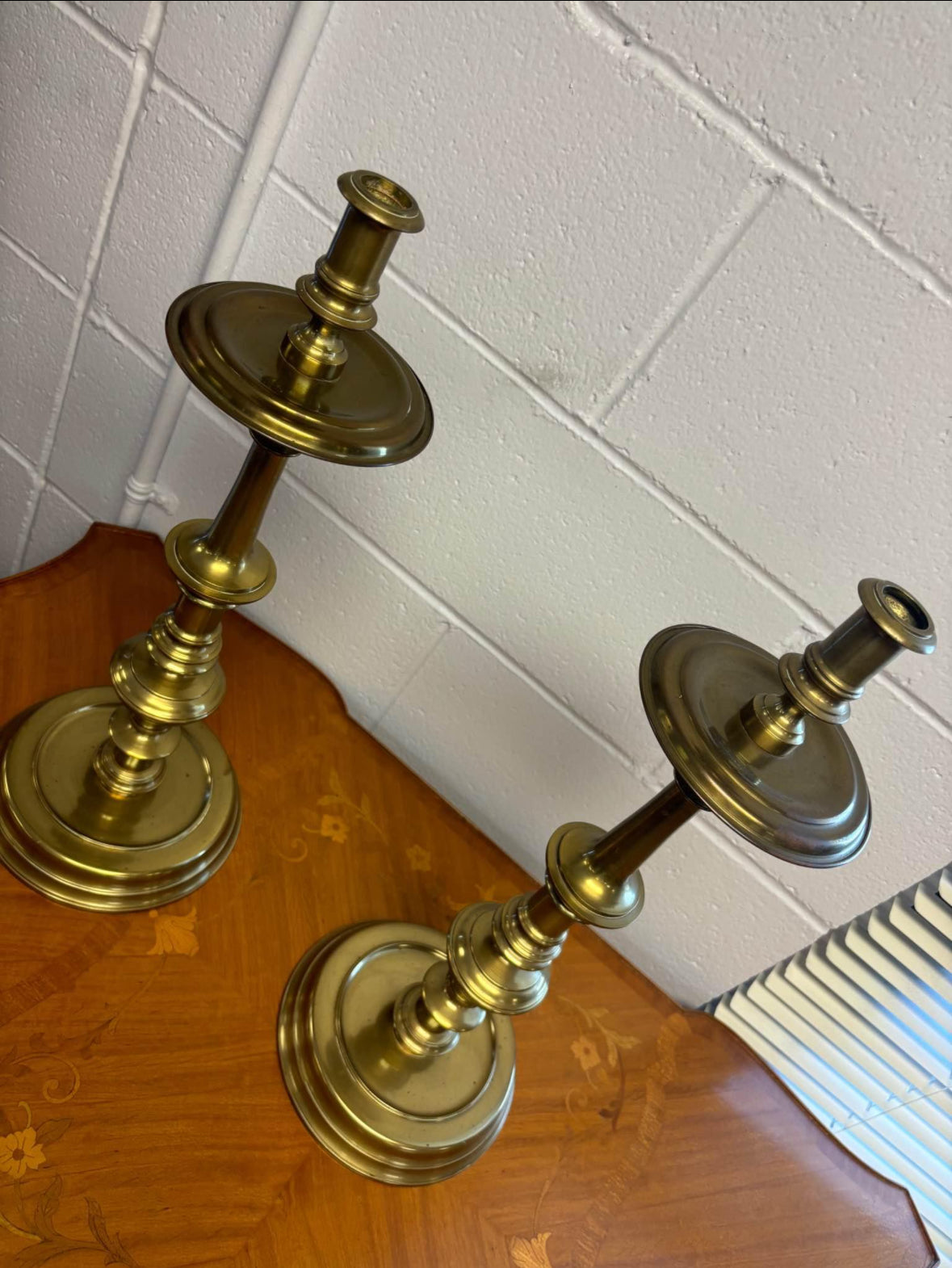 Hello we are selling an Antique Brass Candle Holders, it is in good condition .