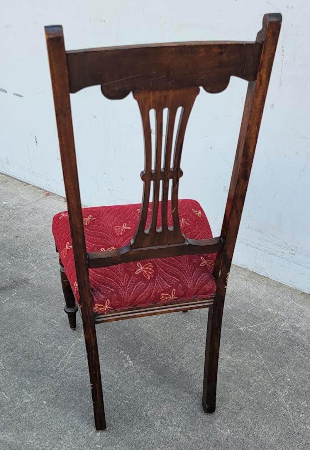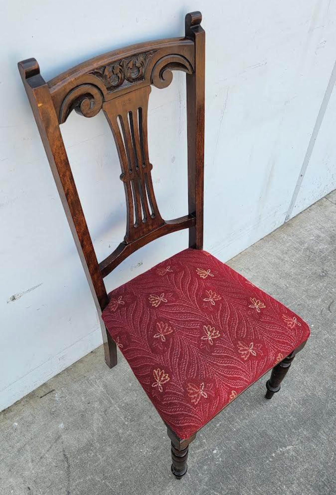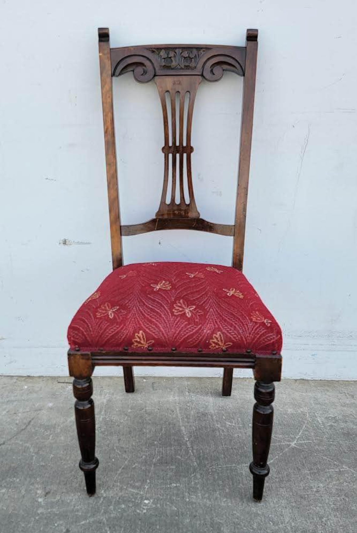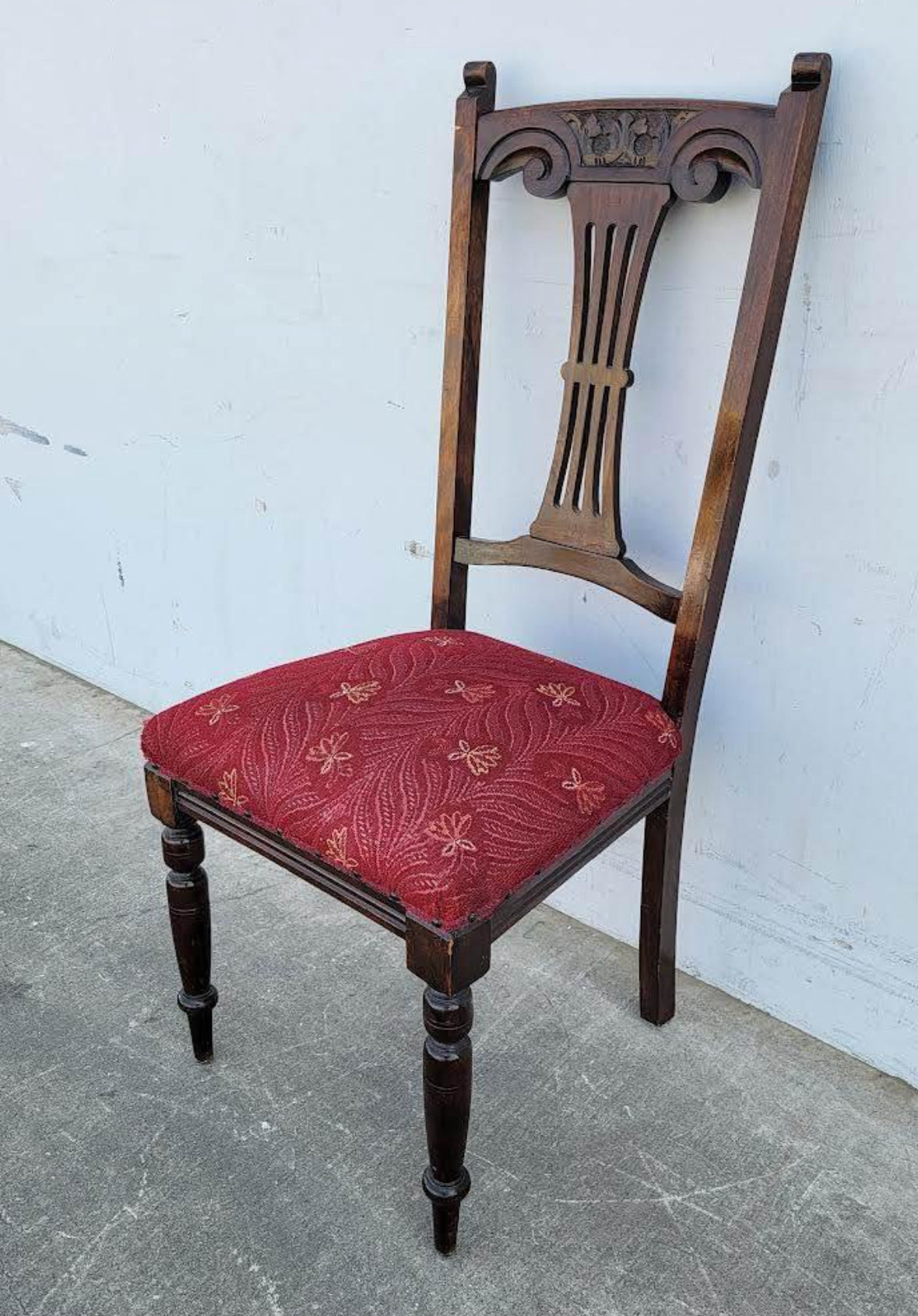 Hello we are selling an Antique carved chair burgundy cushion , it is in good condition .