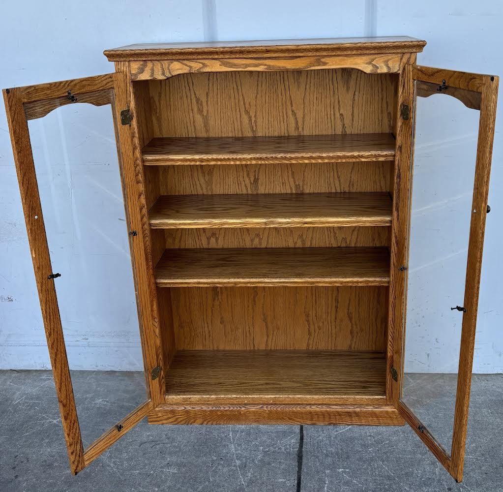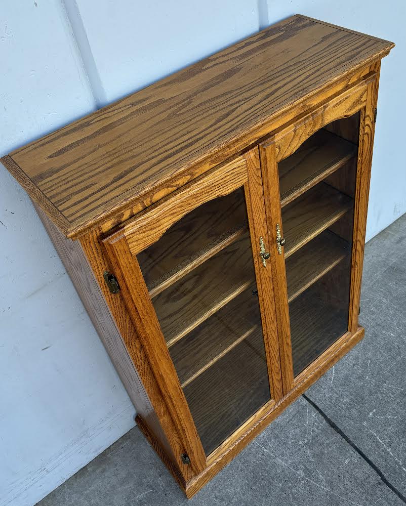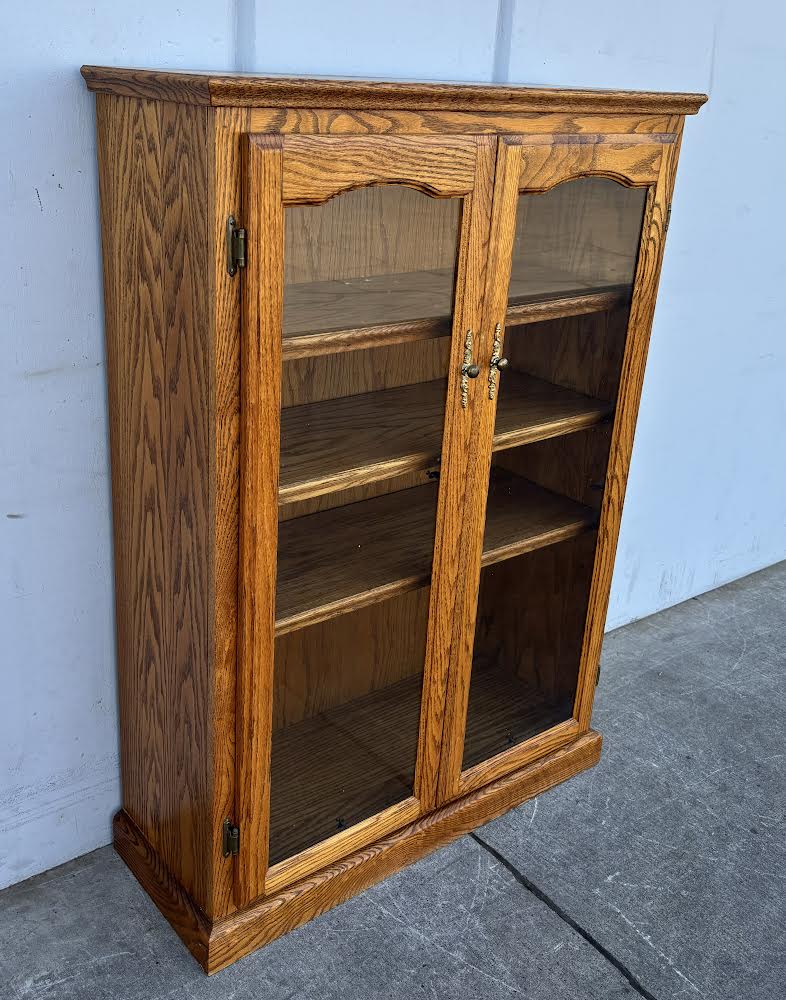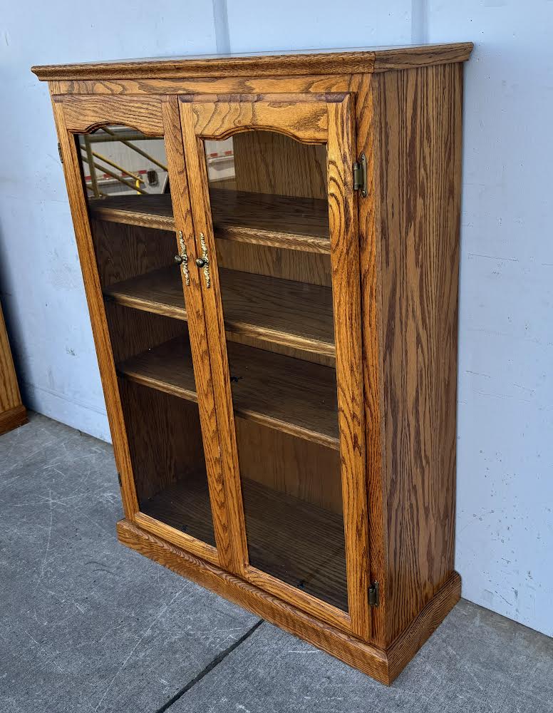 Hello we are selling an Antique Oak Bookcase/Curio cabinet, it is in good condition.