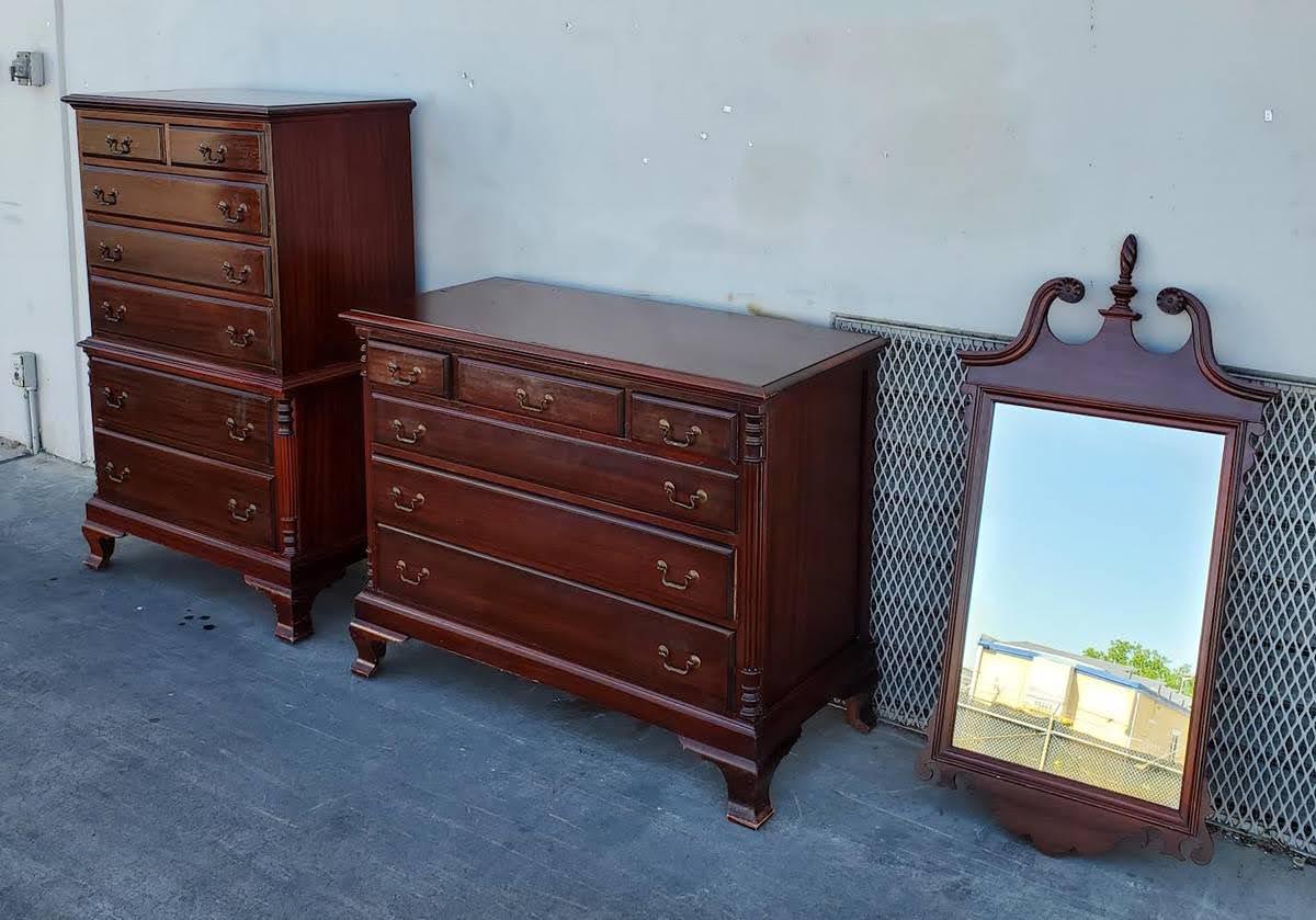 Hello we are selling an Antique/vintage bedroom set tall dresser/highboy and dresser chest with mirror, it is in good condition.
