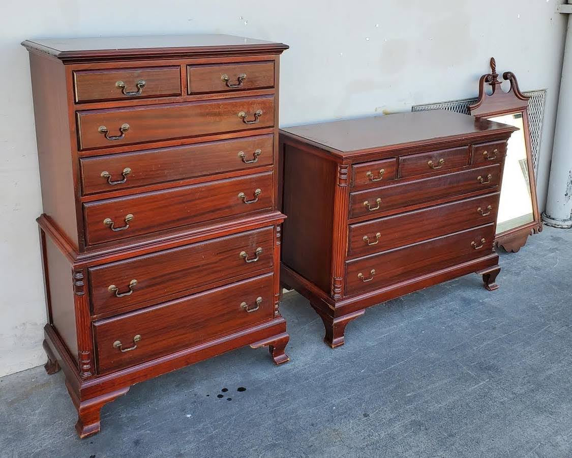 Antique/vintage bedroom set tall dresser/highboy and dresser chest with mirror