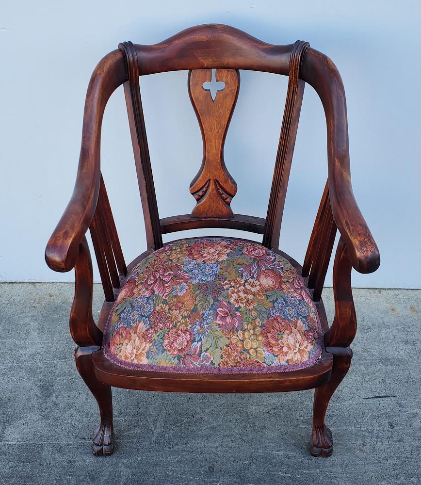 Hello we are selling an antique/ vintage Chippendale style armchair floral cushion ,it is in good condition.