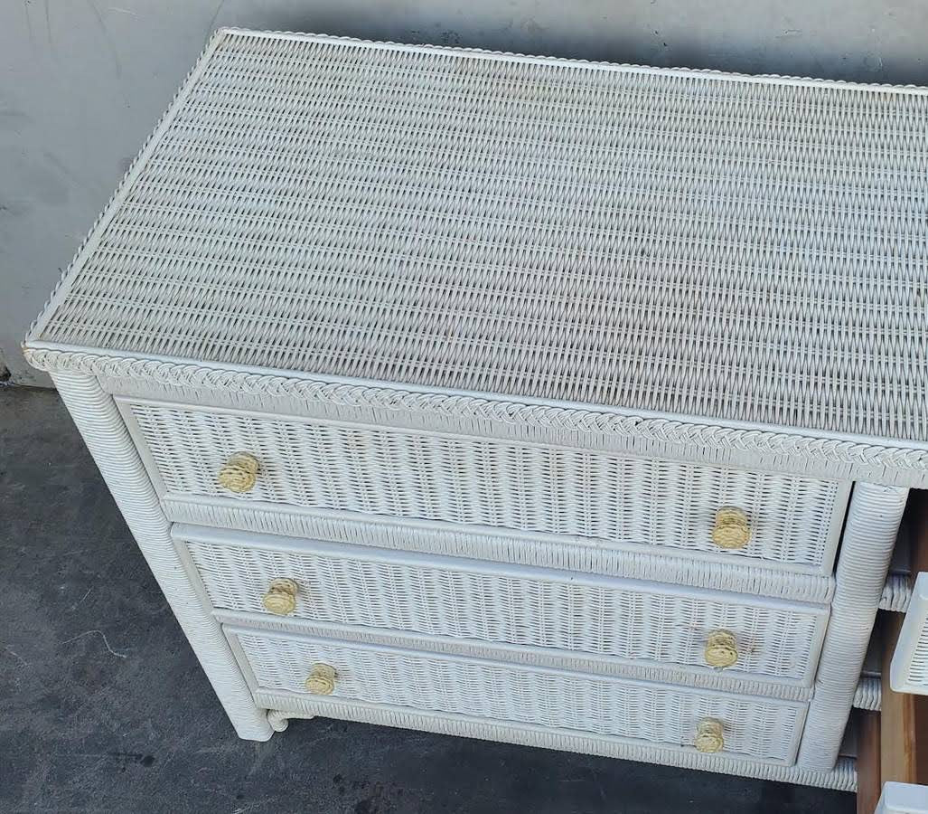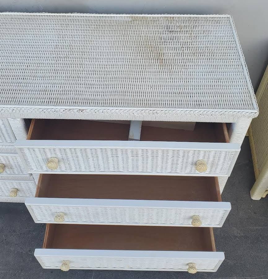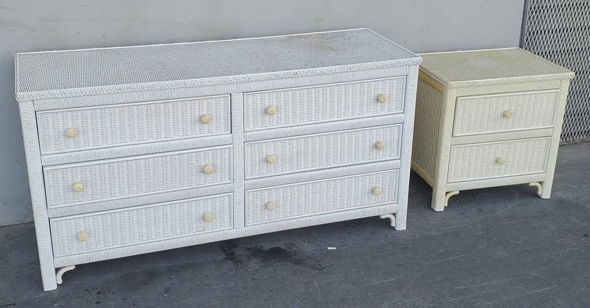 Hello we are selling an Antique/vintage Henry Link white/cream wicker dresser and nightstand set , it is in good condition.