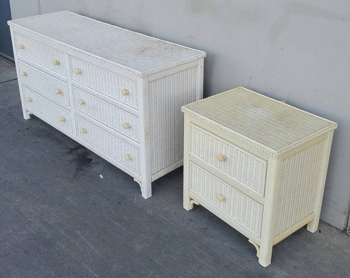 Antique/vintage Henry Link white/cream wicker dresser and nightstand set