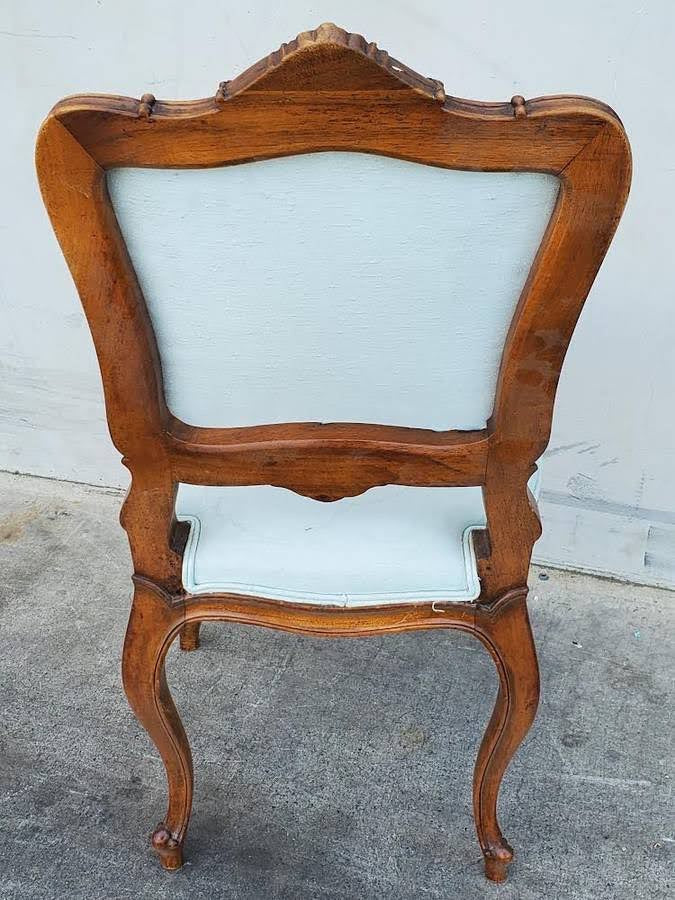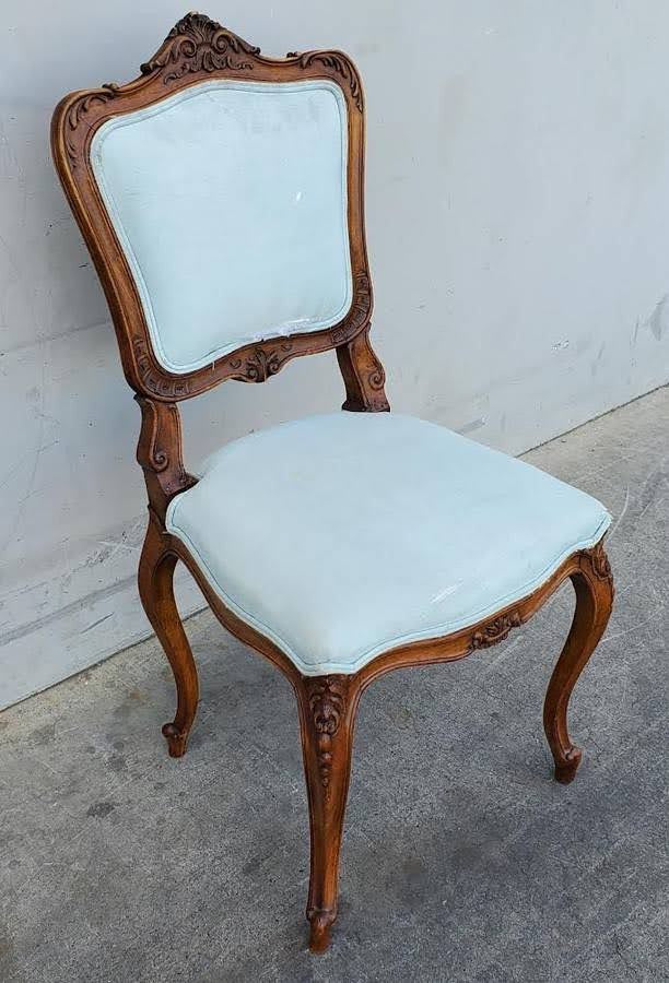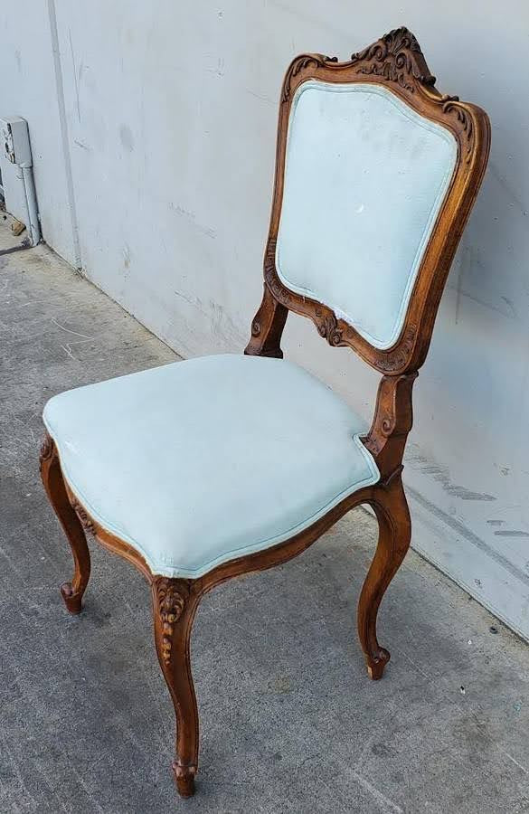 Hello we are selling an Antique/vintage light blue cushion side chair , it is in good condition.