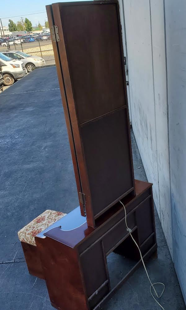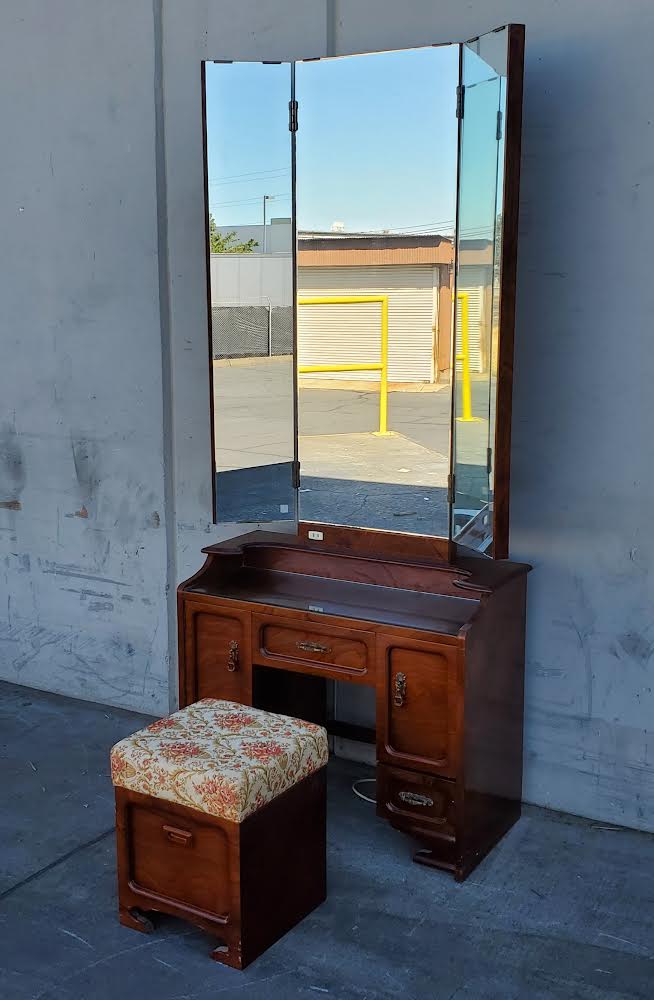 antique/vintage vanity dresser/table tri-fold mirror with stool