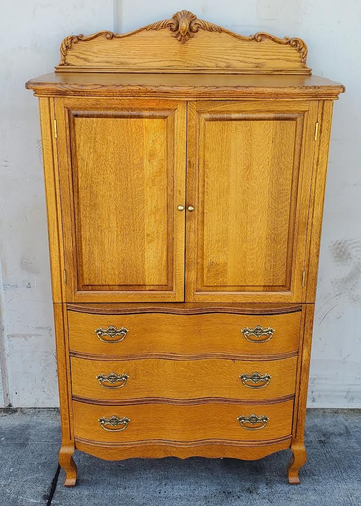 Hello we are selling an Armoire/tv cabinet/dresser light wood/honey , it is in good condition.
