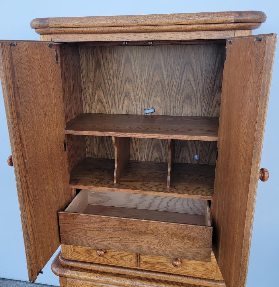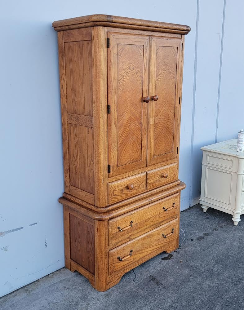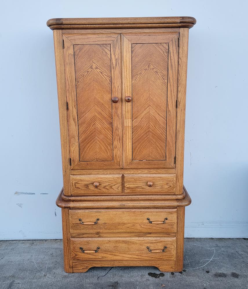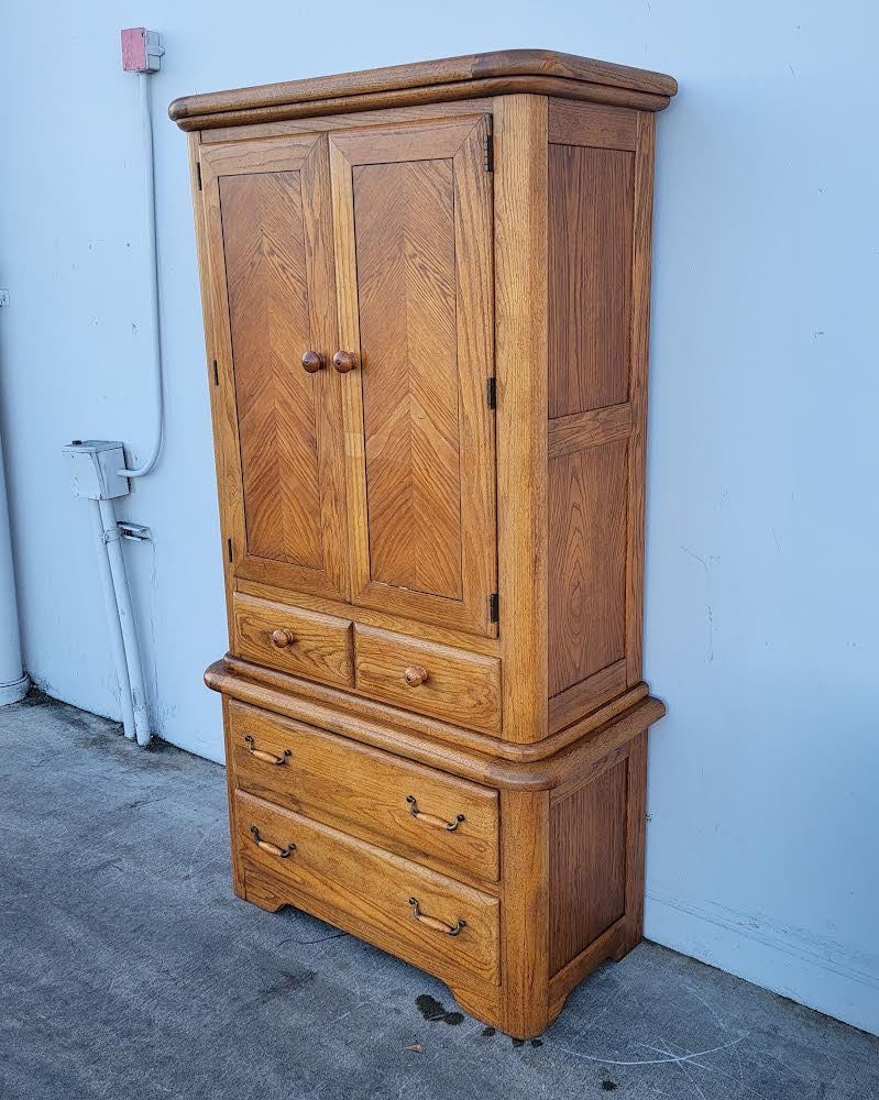 Hello we are selling an armoire/ wardrobe tv cabinet light wood , it is in good condition.