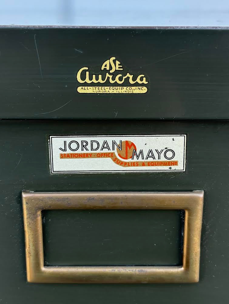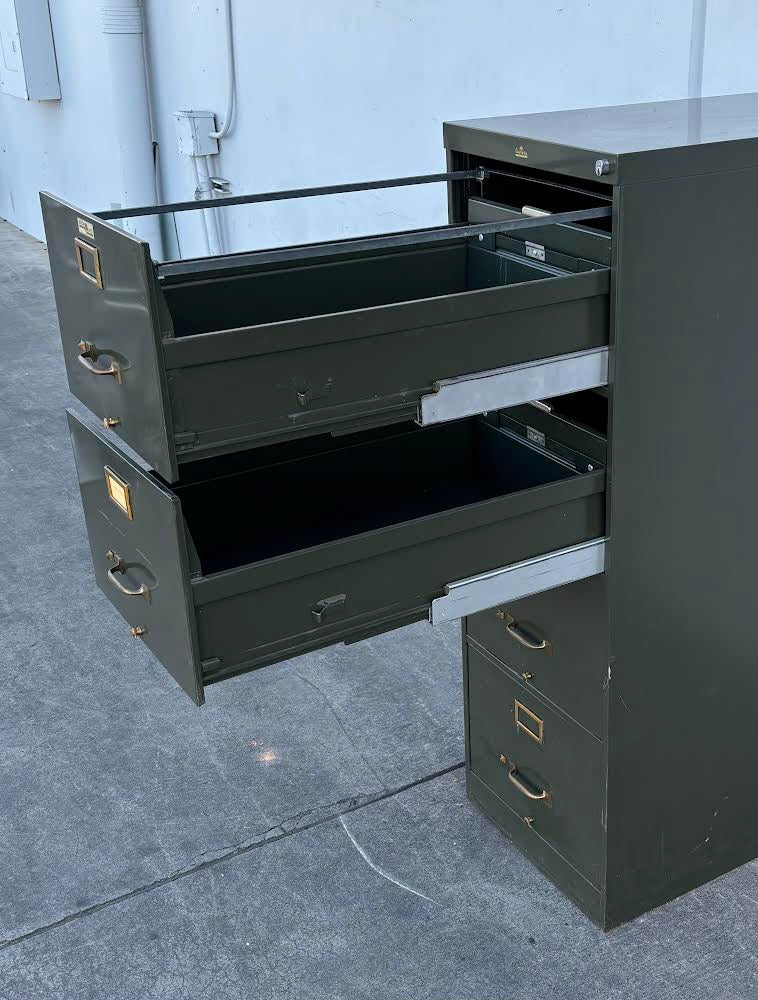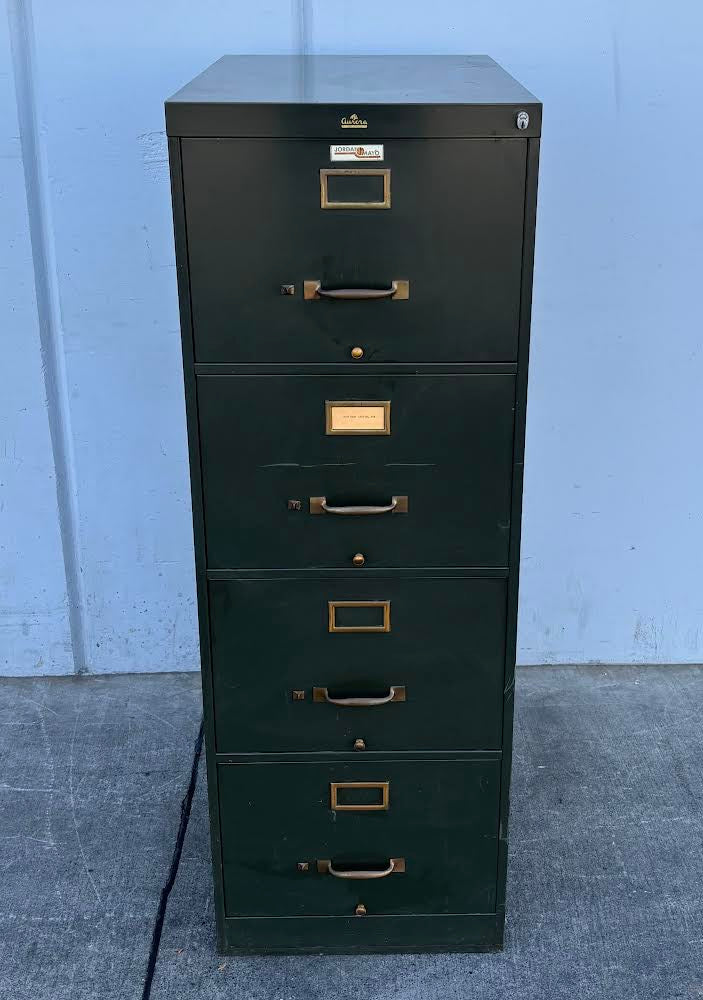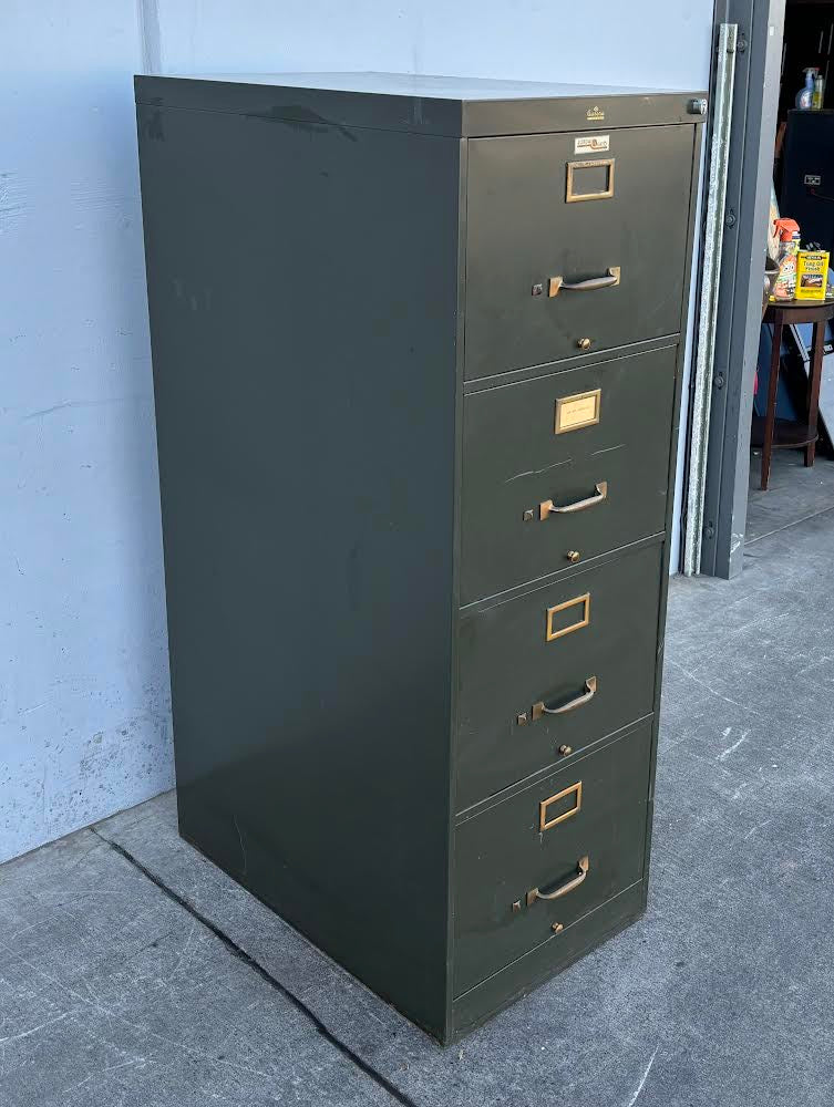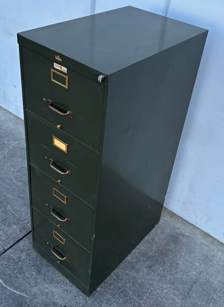 Hello we are selling a ASE aurora jordan mayo Green Metal Antique 4 Tier File Cabinet (no key) , it is in good condition .