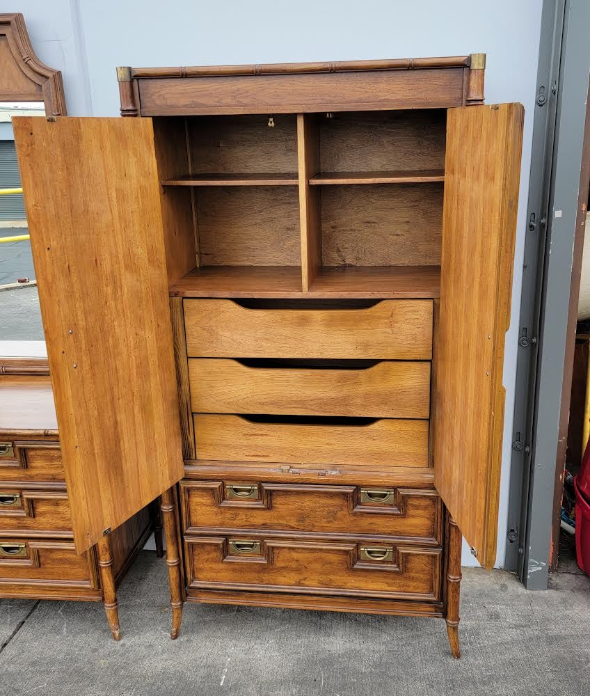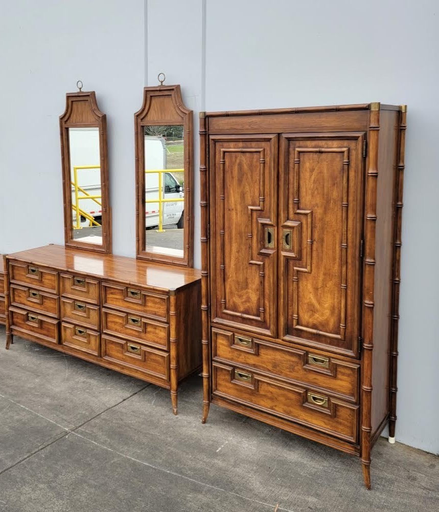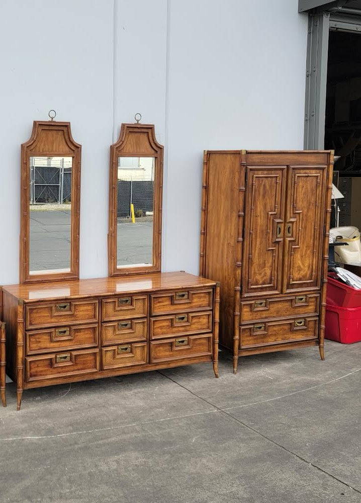 Hello we are selling a bedroom set bamboo style dresser w/2 mirrors, armoire ,it is in good condition.