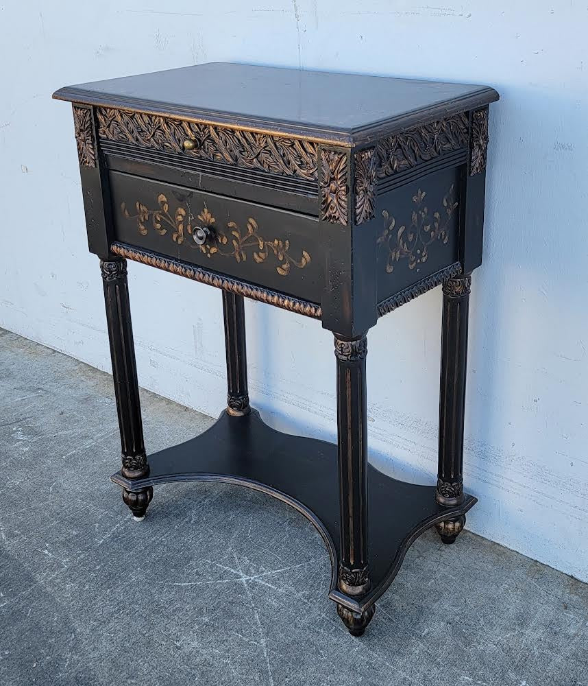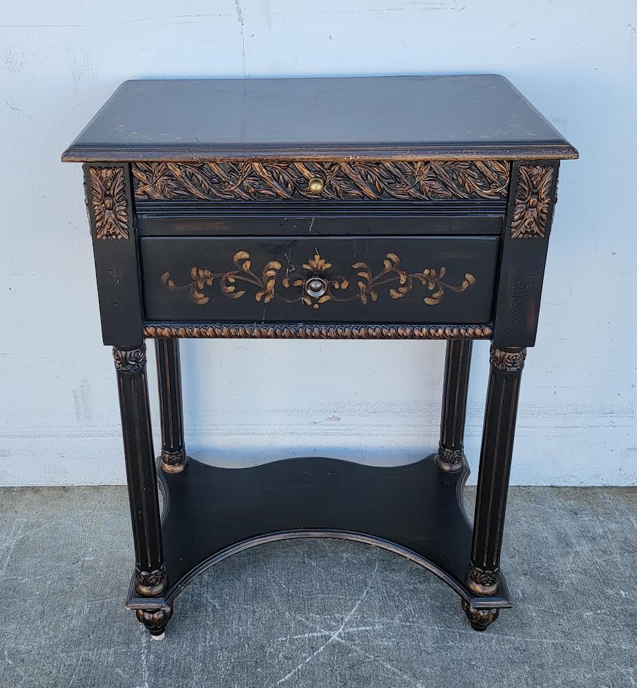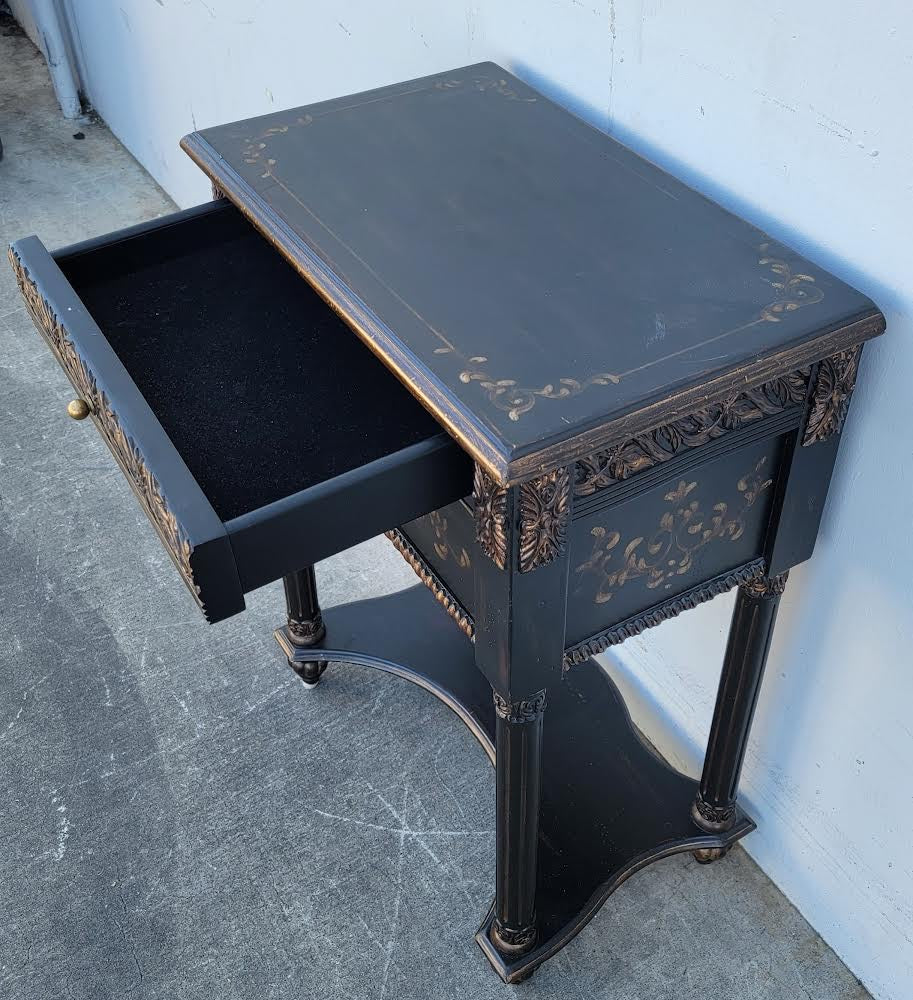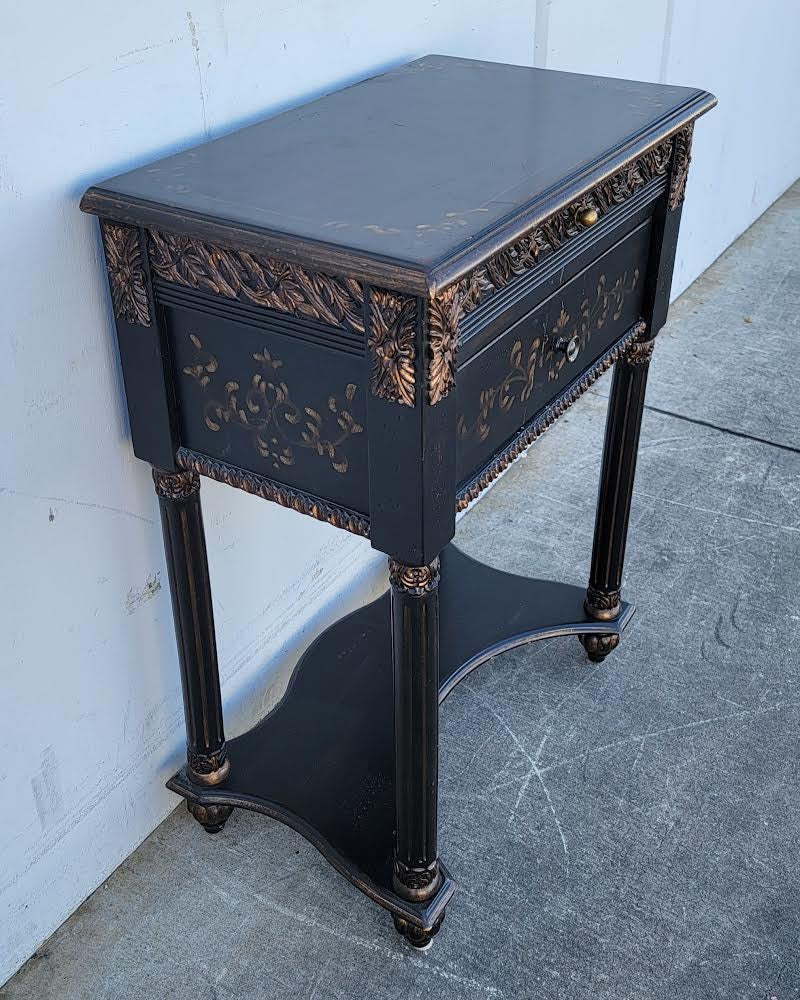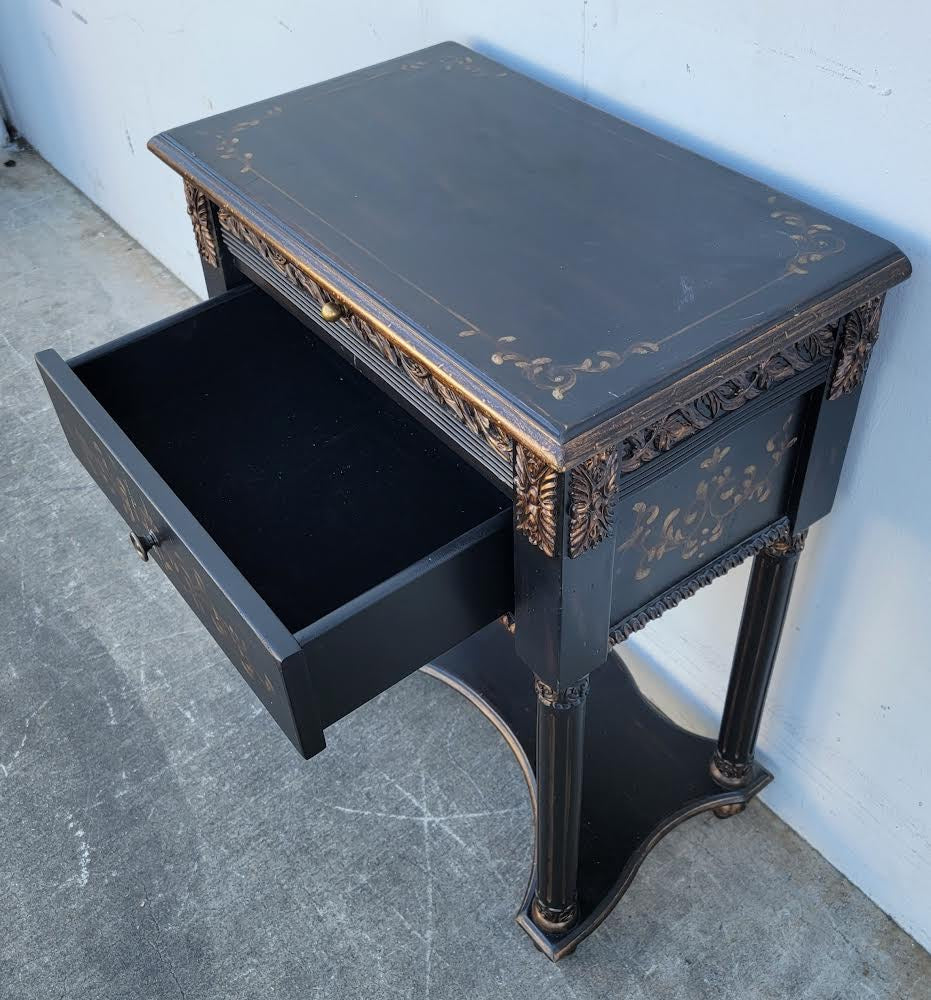 Hello we are selling a Black Asian chinoiserie style end/ side table ,it is in good condition.