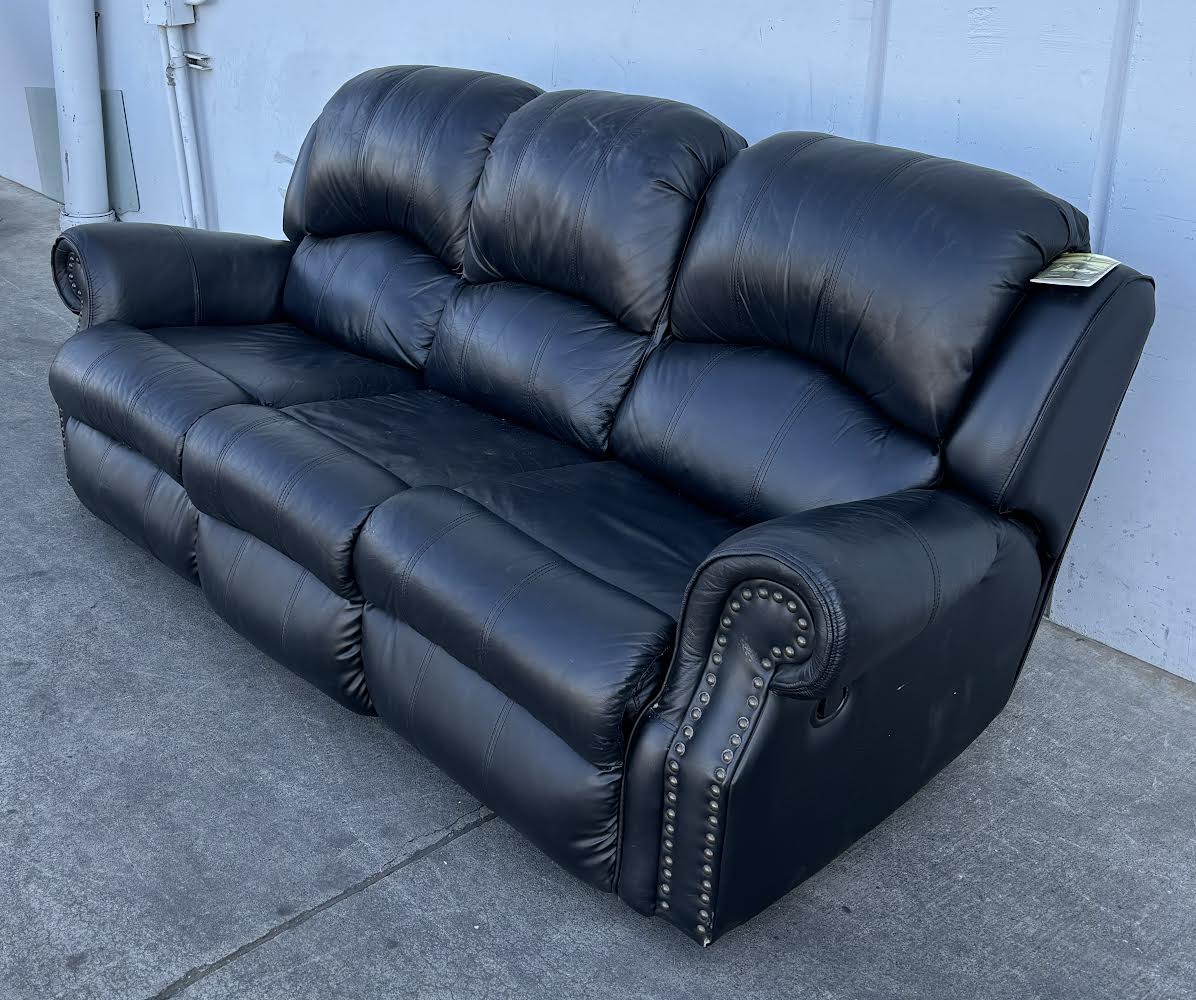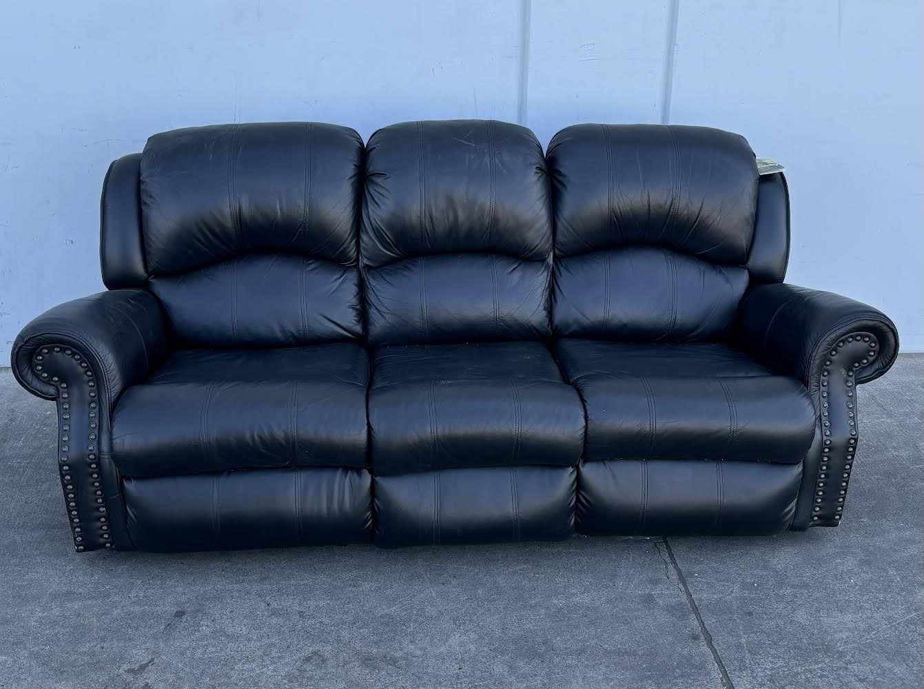 Hello we are selling a Black Leather 3 Seat Recliner Sofa , it is in good condition .