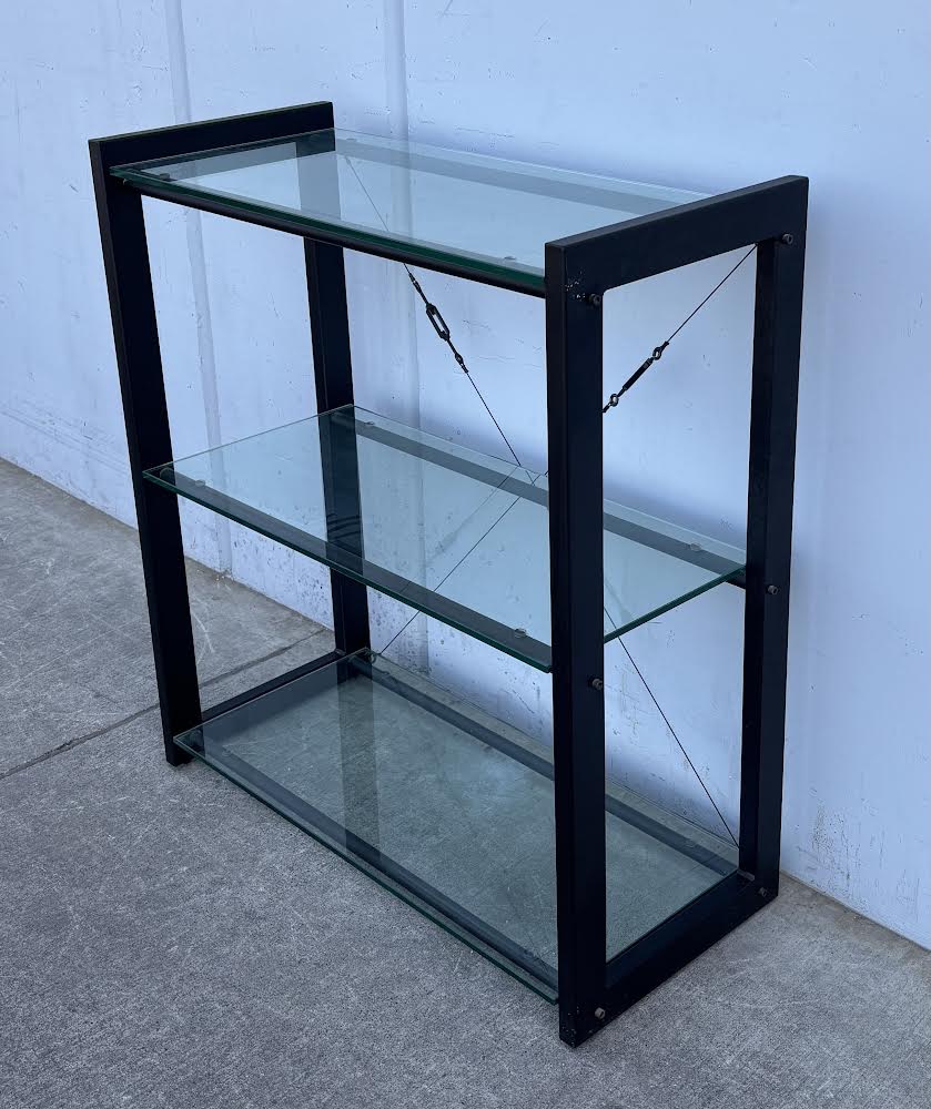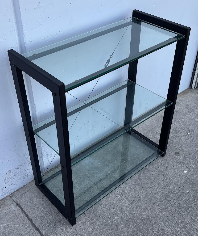Hello we are selling an Black Steel Shelving Unit Glass 3 Tier, it is in good condition .