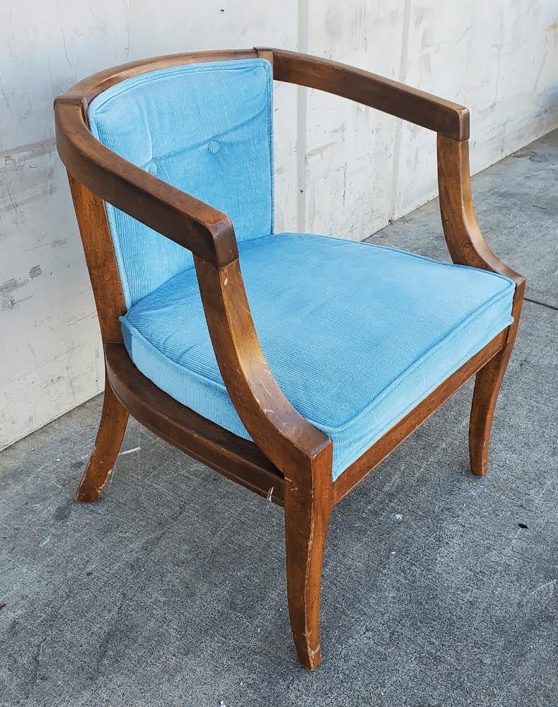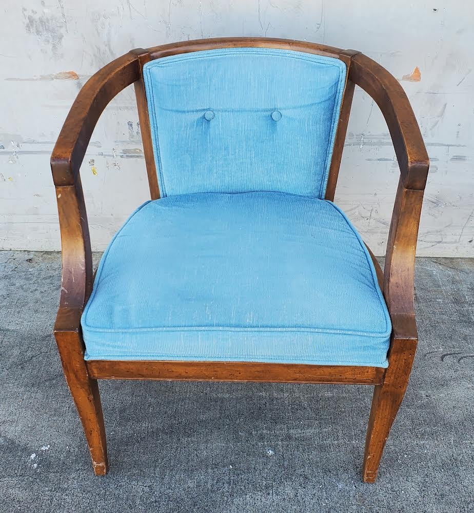 Hello we are selling a Blue barrel accent/armchair , it is in good condition.