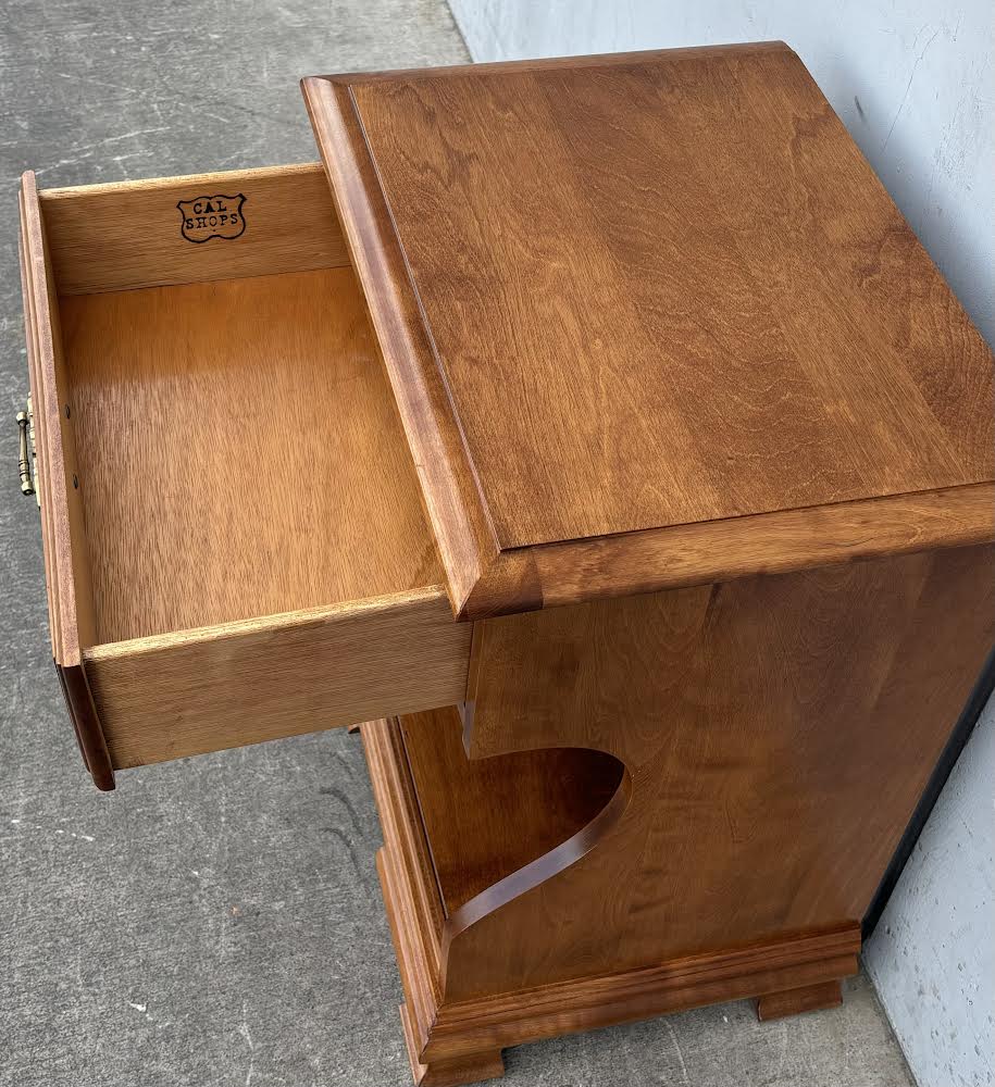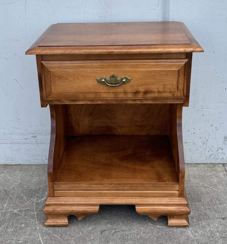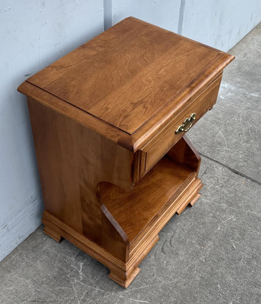 Hello we are selling a Cal shops Solid Hard Rock Maple Colonial Early American Open Cabinet Nightstand ,it is in good condition .