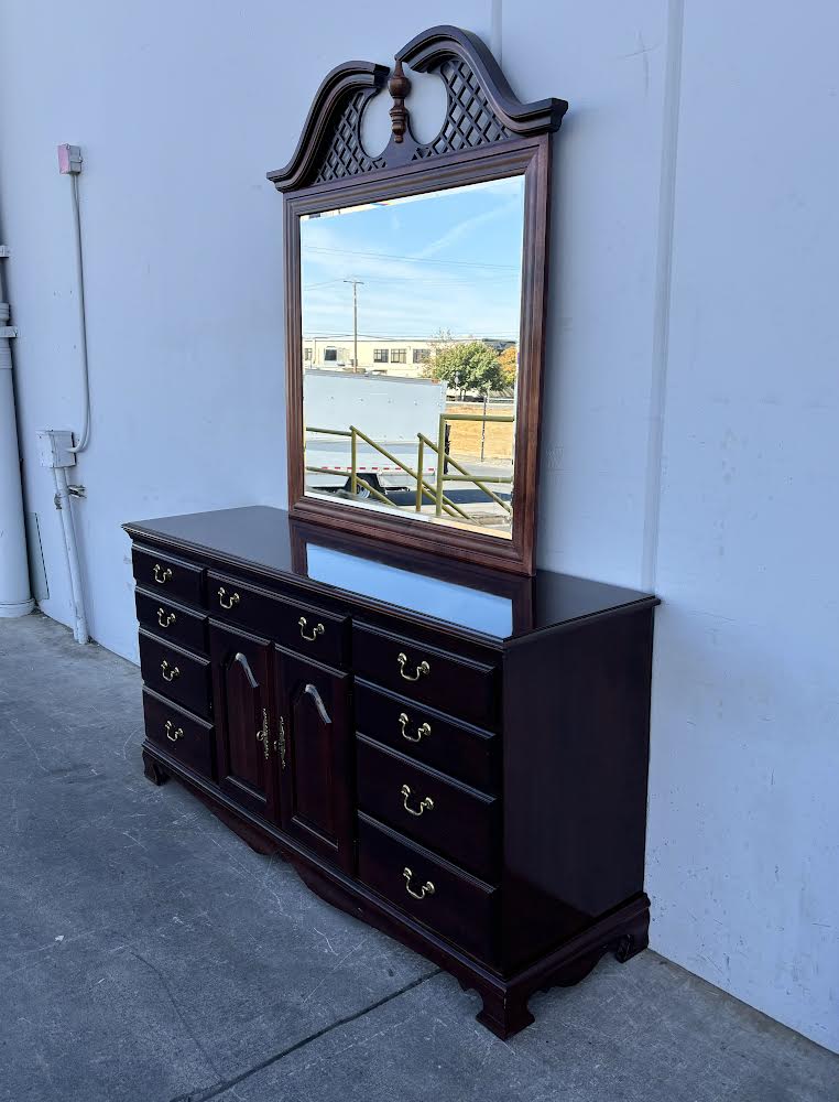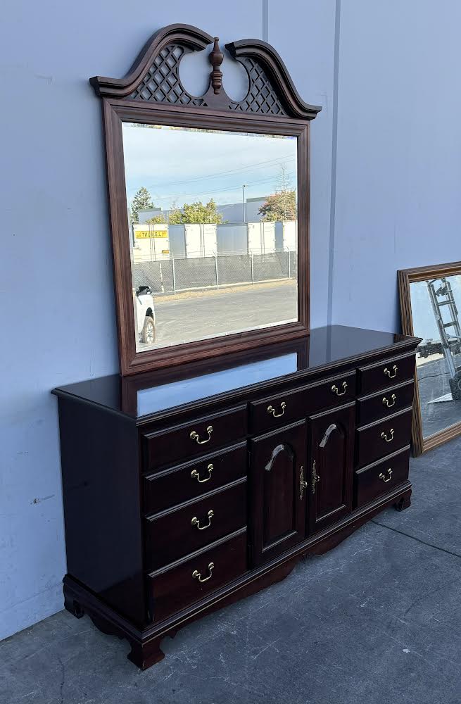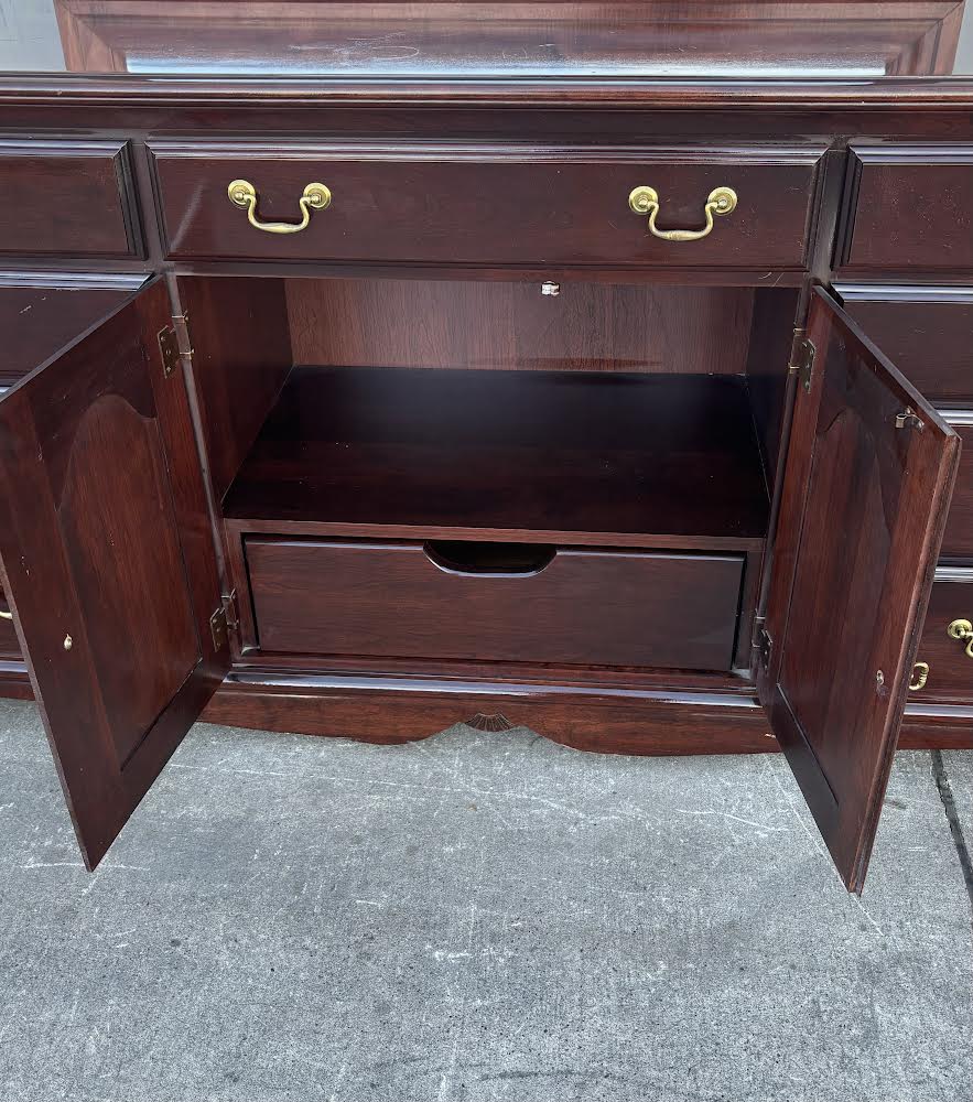 Hello we are selling a Crawford Cherry Solid Wood Dresser with Mirror , it is in good condition .