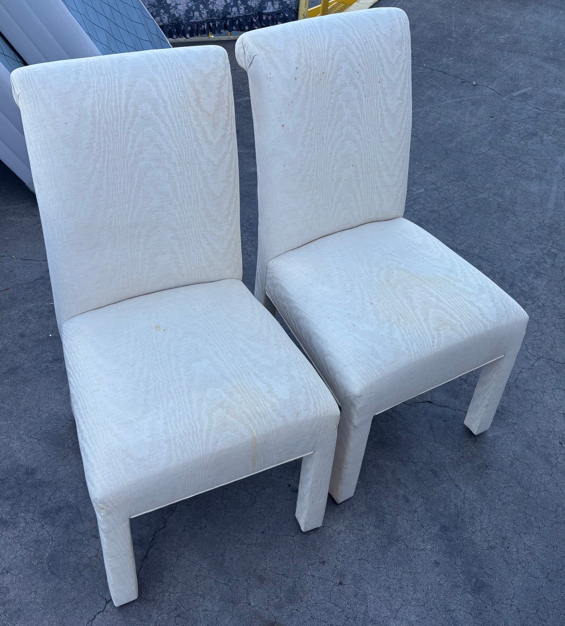 Hello we are selling a dark wood dining table with 6 white floral chairs and leaf , it is in good condition .
