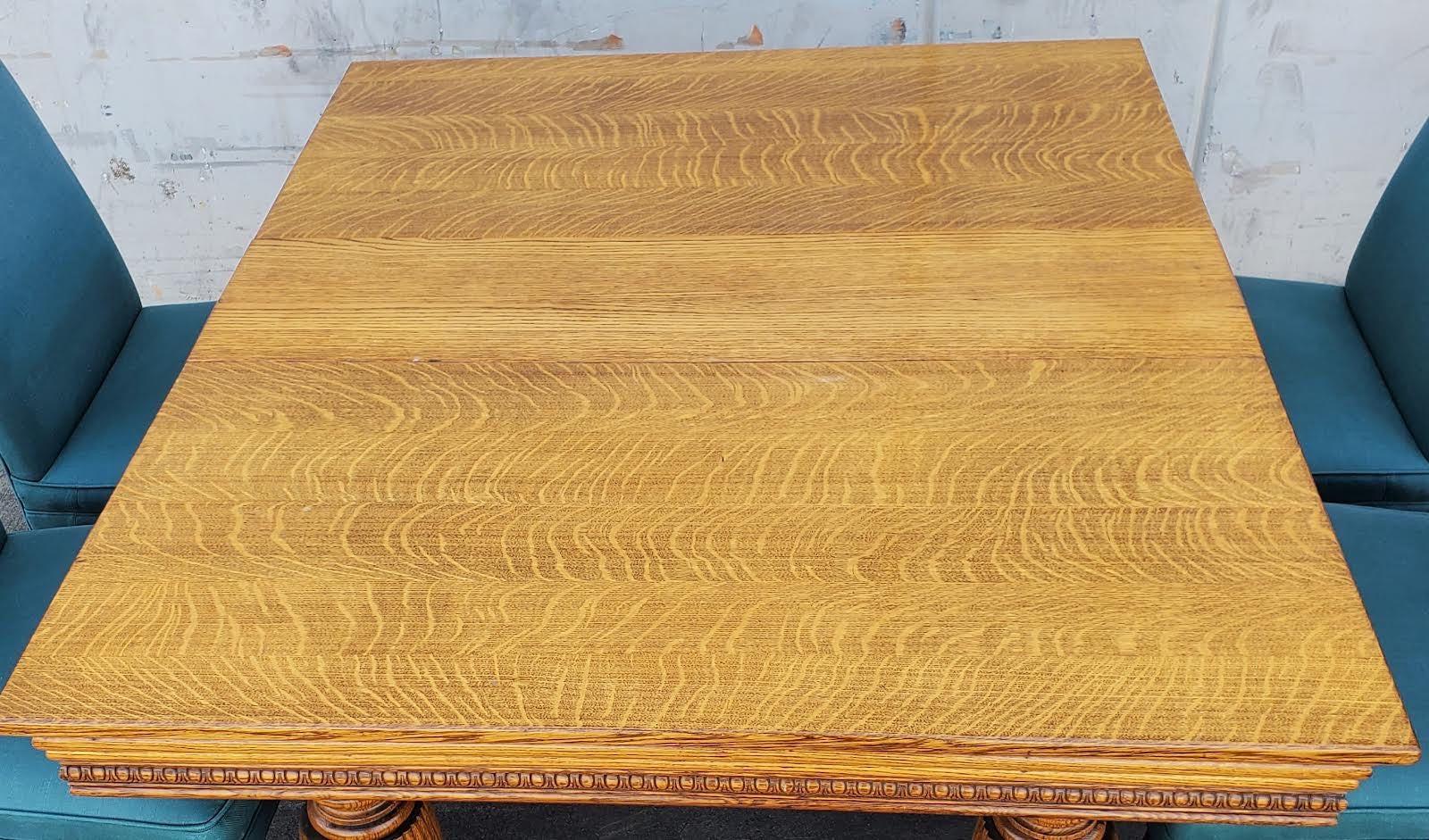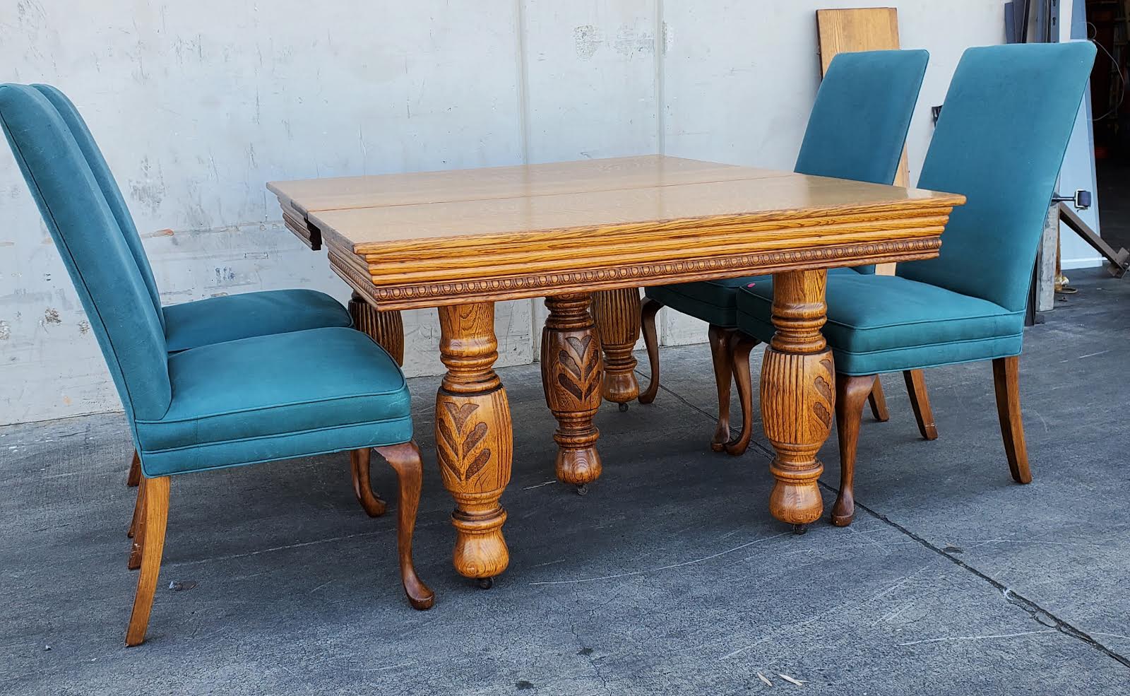Hello we are selling a Dining Table with 4 blue chairs and 2 leaves , it is in good condition.