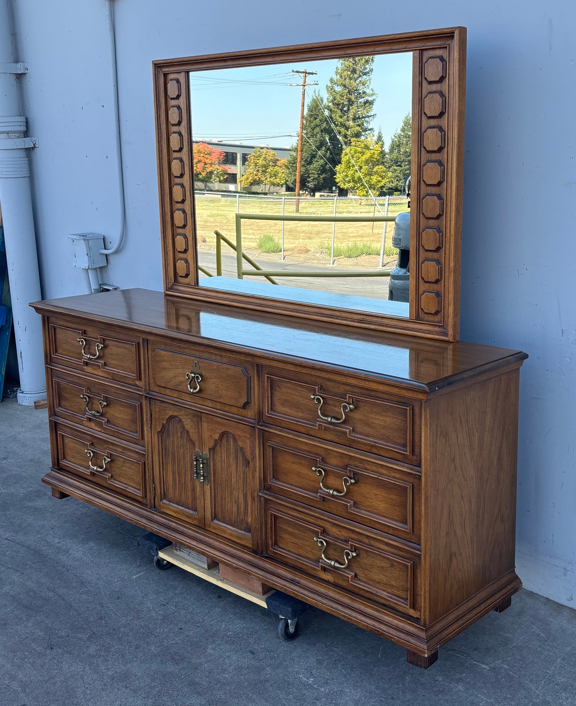 Hello we are selling a dresser/ chest of drawers with mirror , it is in good condition .