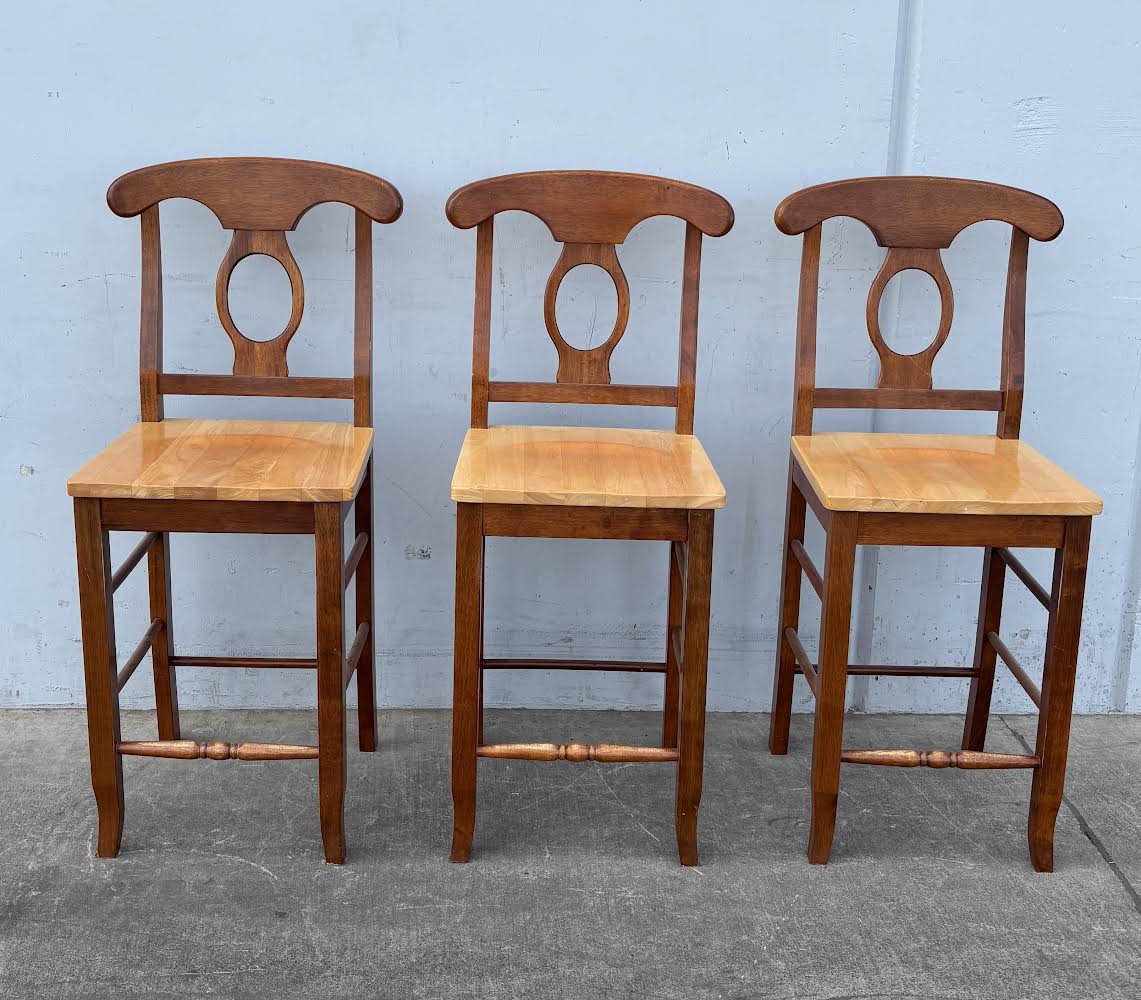 Hello we are selling an Eleanor Napoleon Back Wood Counter Chair Bar Stools Made in Malaysia ,it is in good condition .