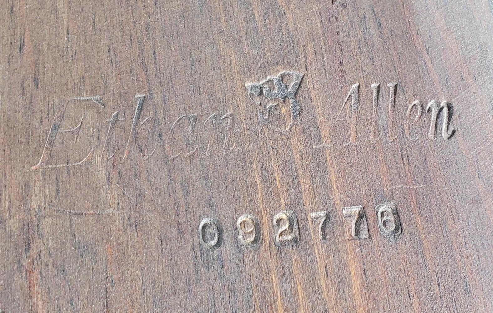 Hello we are selling an Ethan Allen dark wood round/oval coffee table , it is in good condition.