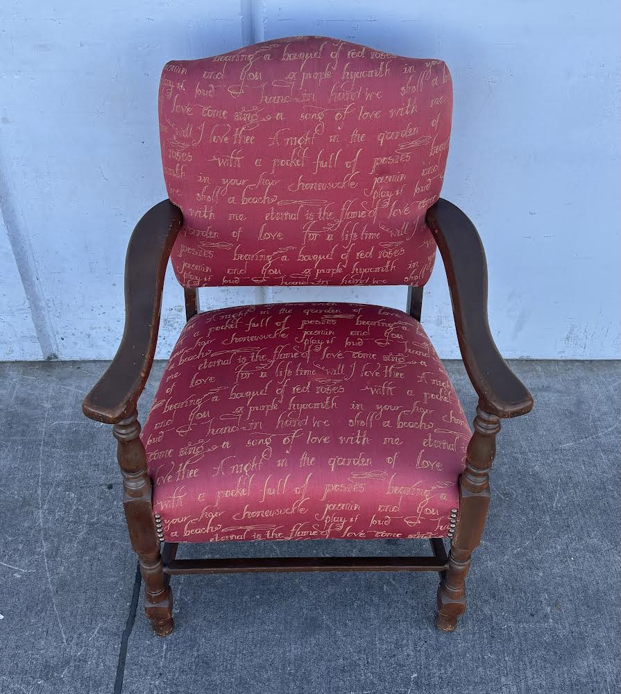 Hello we are selling a French Style Red Upholstered Arm Chair ,it is in good condition .
