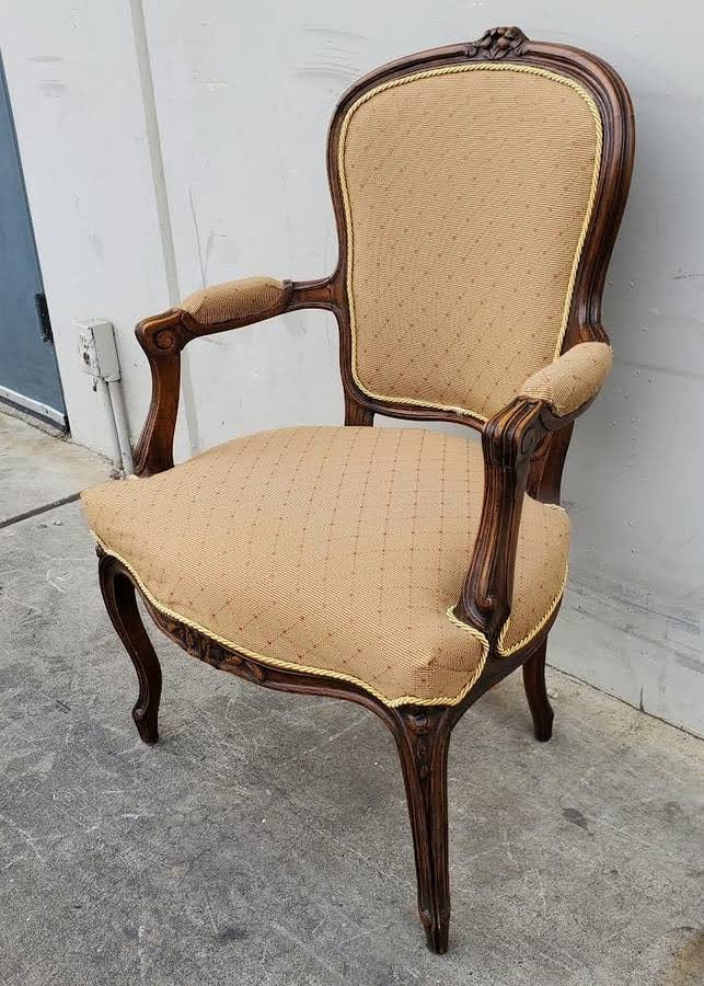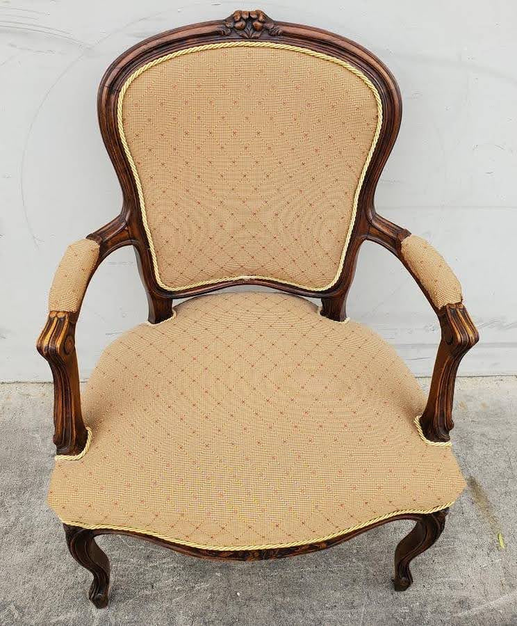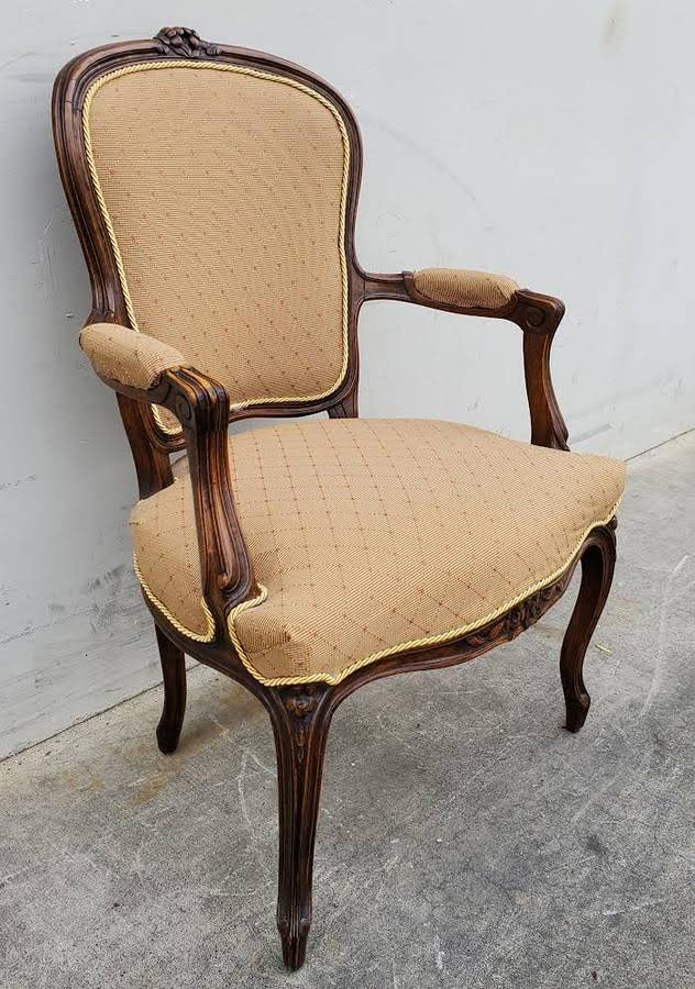 Hello we are selling a Gilberd’s tan/dark wood armchair, it is in good condition.