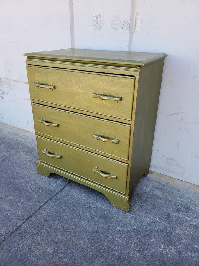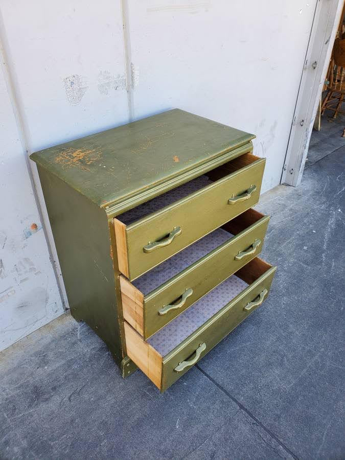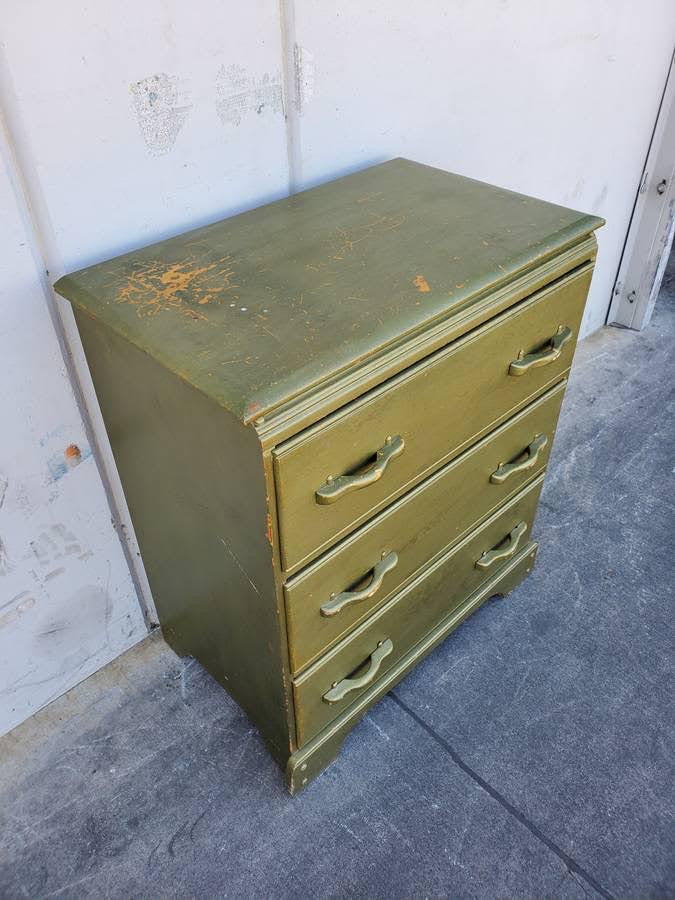 Hello we are selling a green dresser/ chest of drawers / nightstand , it is in fair condition with some scratches on top.