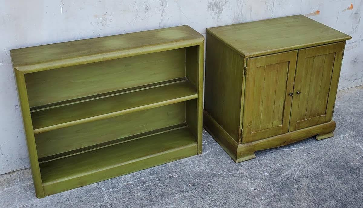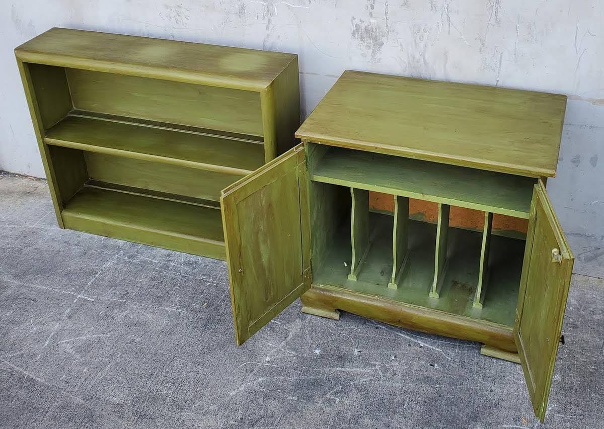 Hello we are selling a Green end/side table/cabinet and bookcase set , it is in good condition.