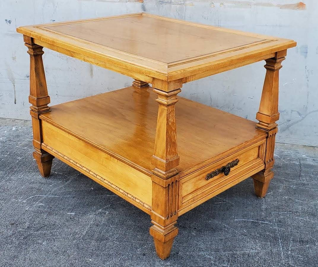 Hello we are selling a Hammary light wood end/side table with drawer , it is in good condition.