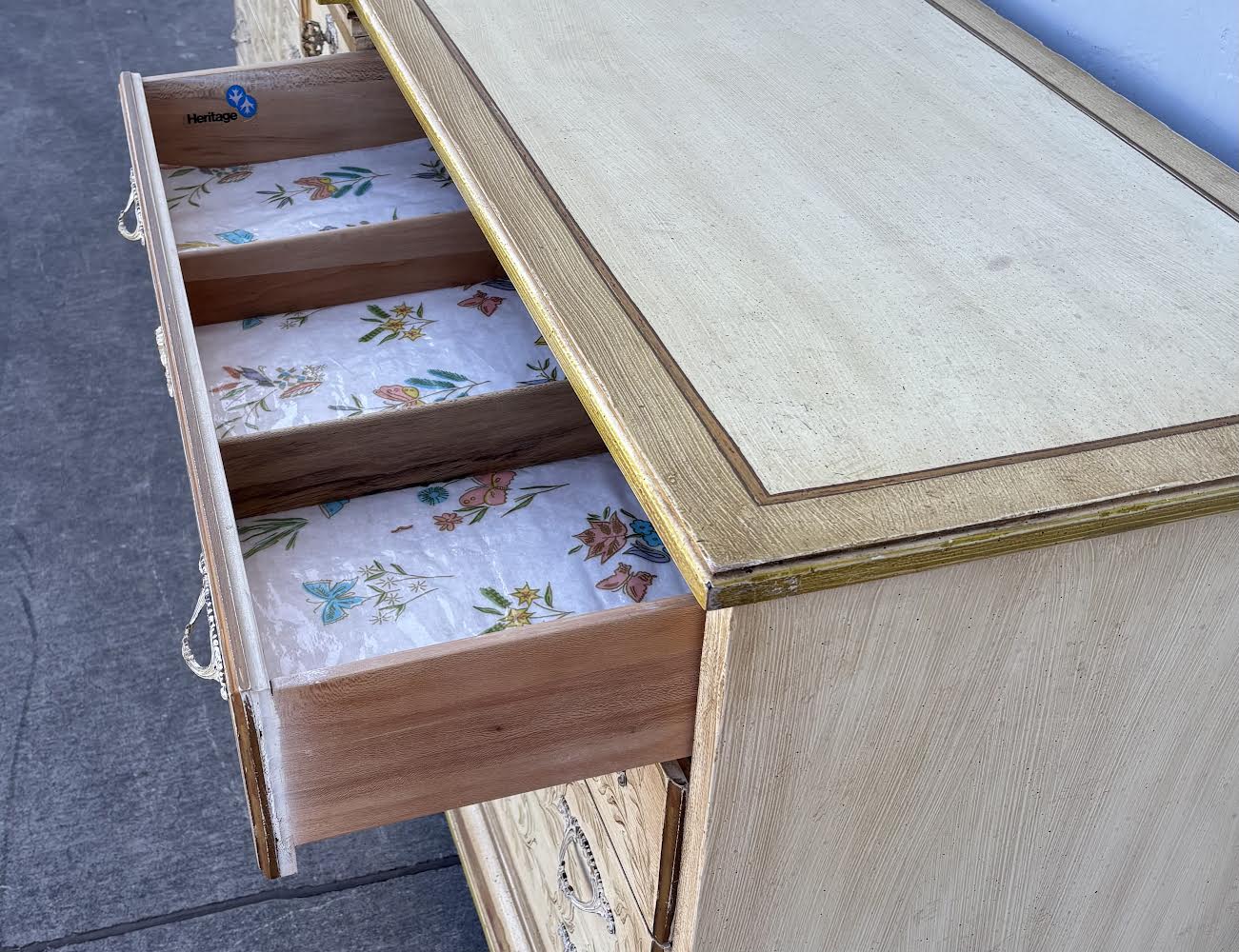 Hello we are selling a Heritage Large Dresser Light Wood with Gold Trim ,it is in good condition .