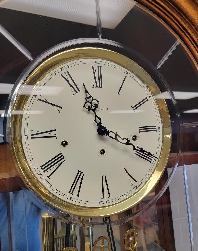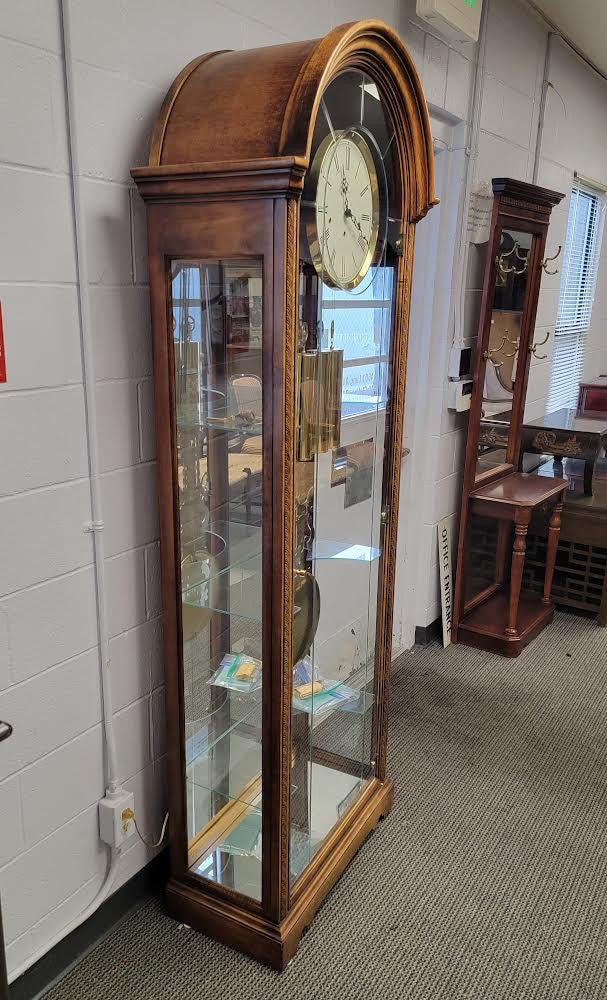 Hello we are selling a howard miller grandfather clock with curio , it is in good condition.
