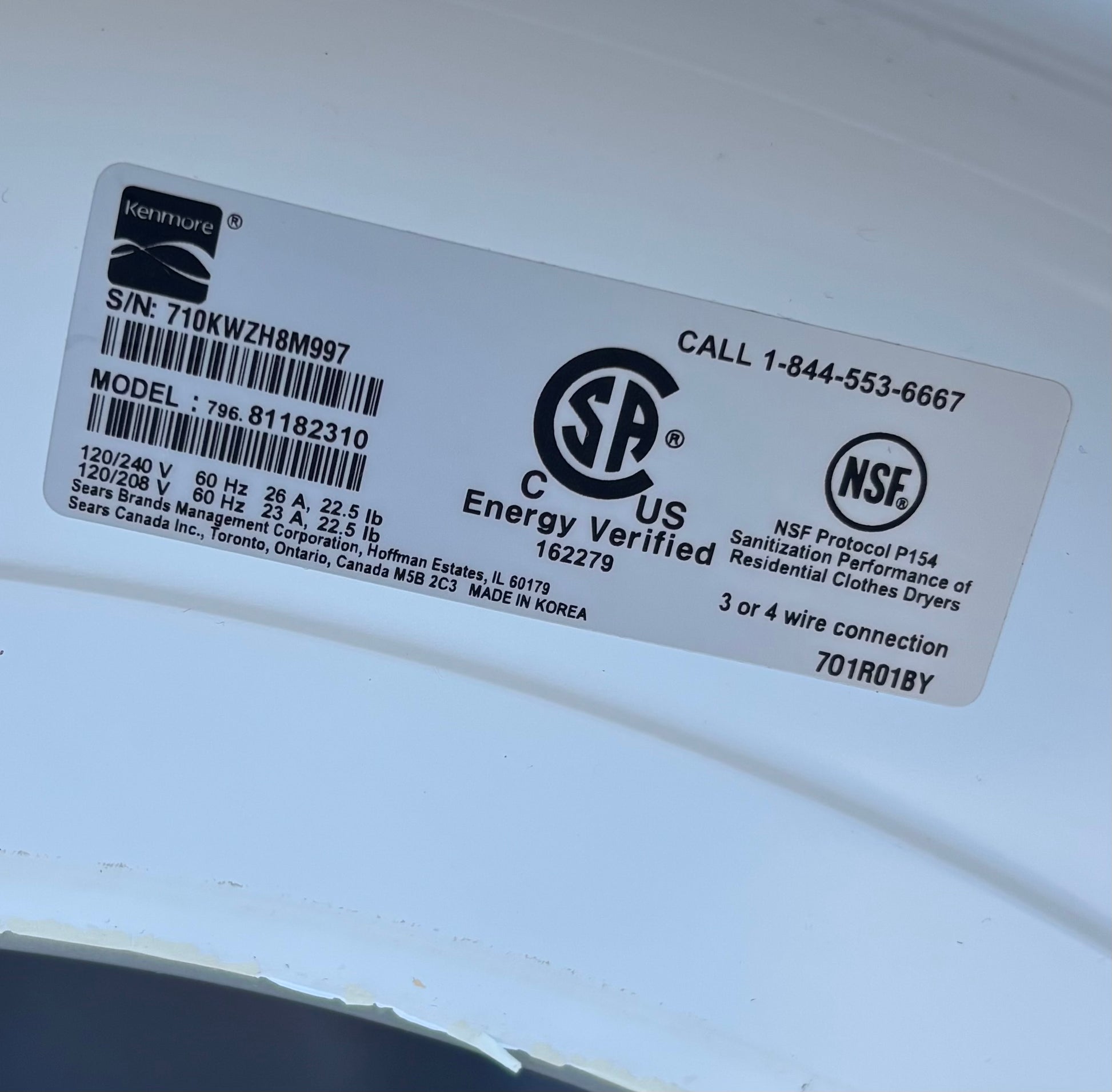 Hello we are selling a Kenmore Electric Dryer, it is in good condition .
