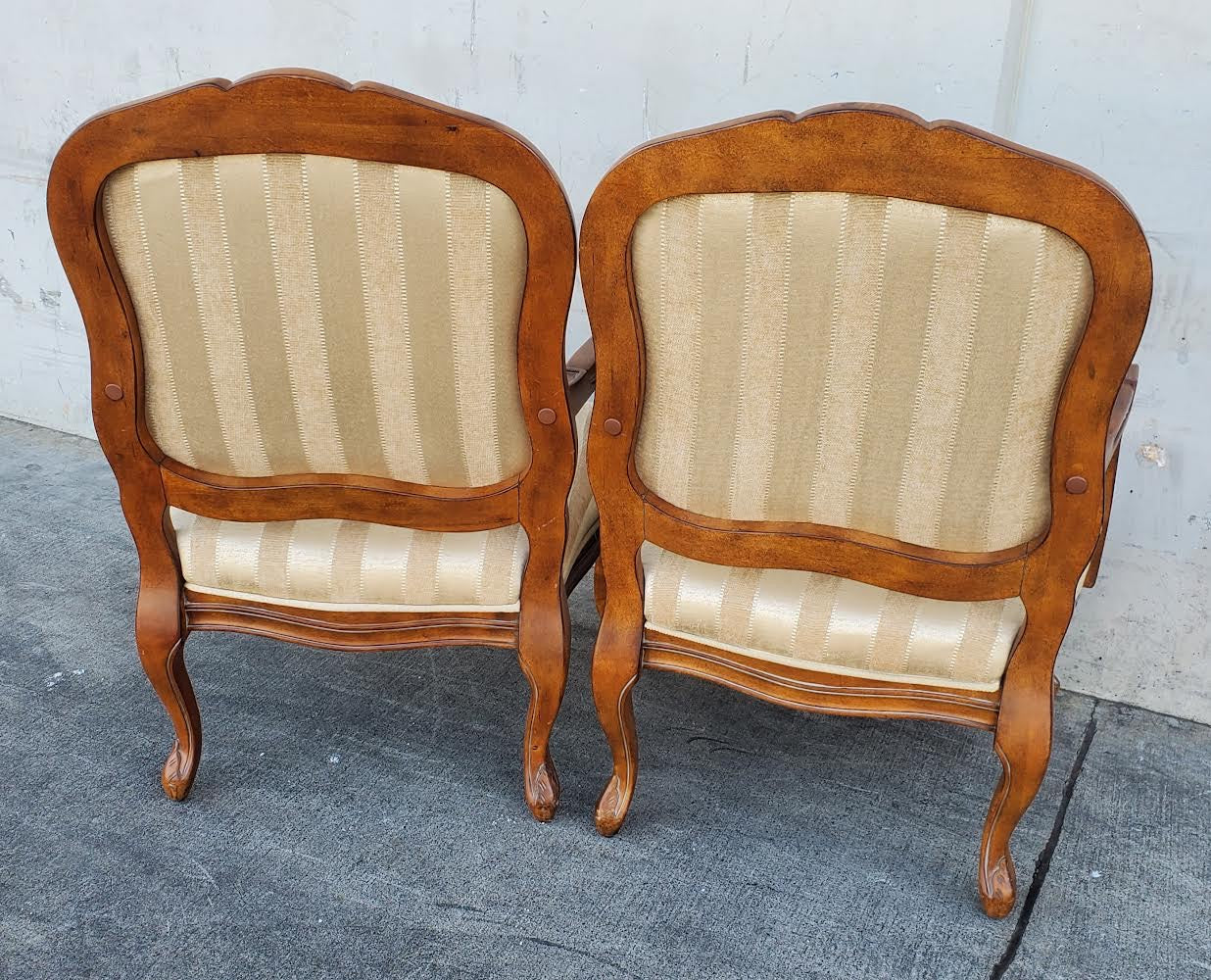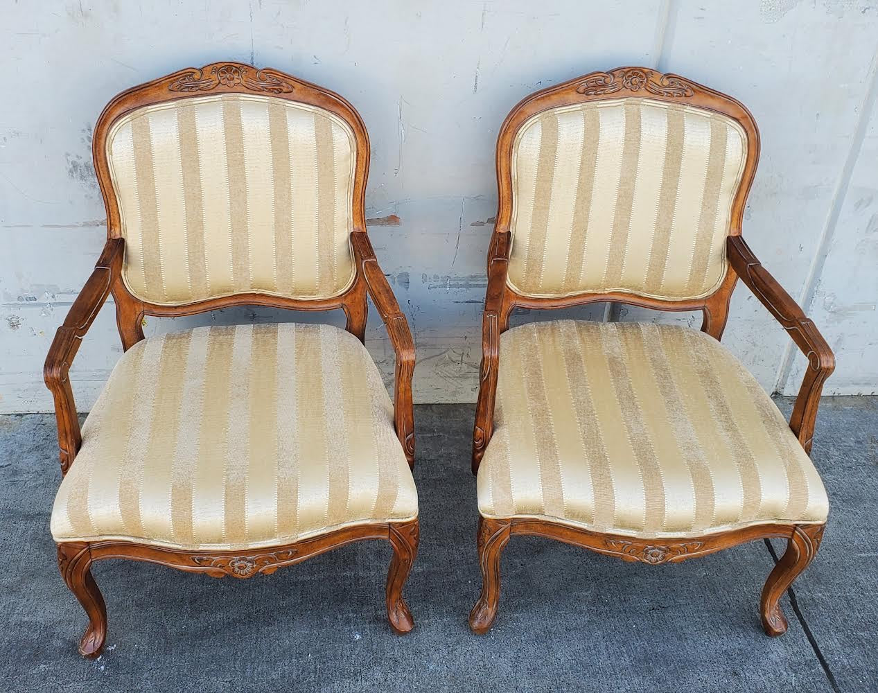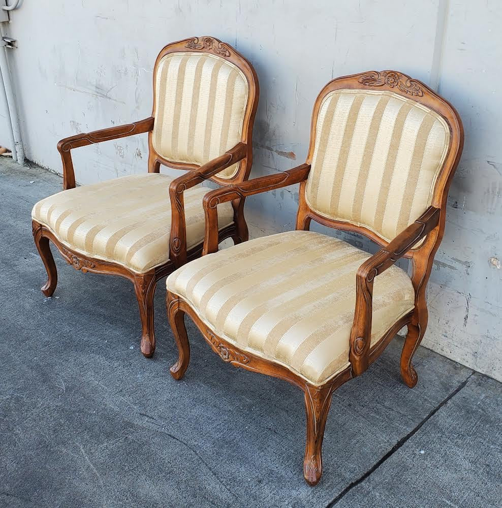Hello we are selling a Klaussner antique/vintage French style accent/armchairs (2) tan, it is in good condition.