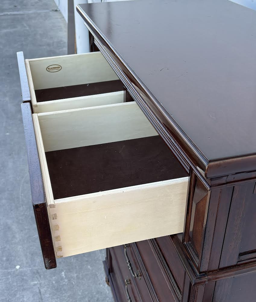 Hello we are selling a Klaussner International Tall Chest/Dresser , it is in good condition .