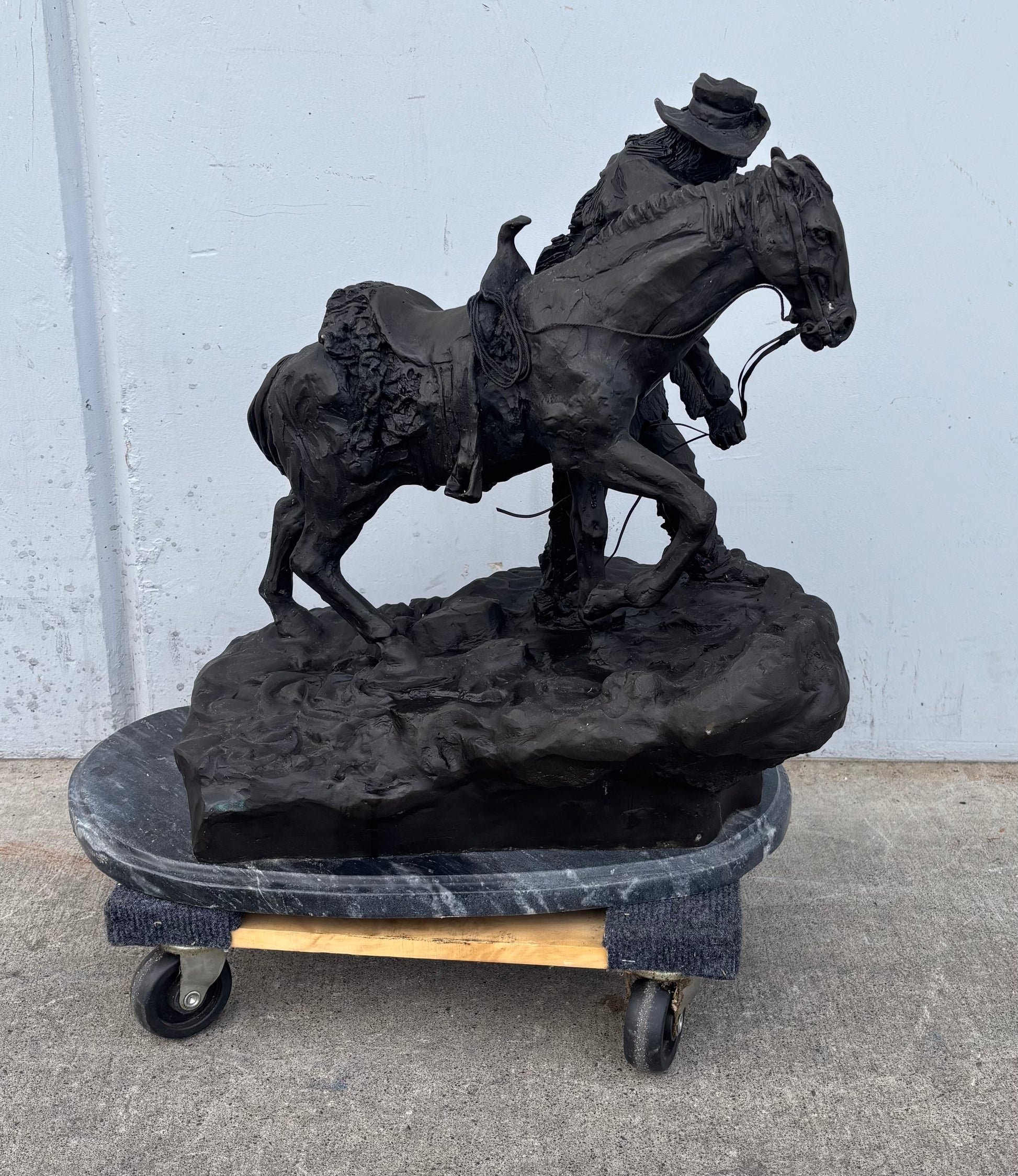 Hello we are selling a Marshall Mitchell two alone bronze statue , it is in good condition .