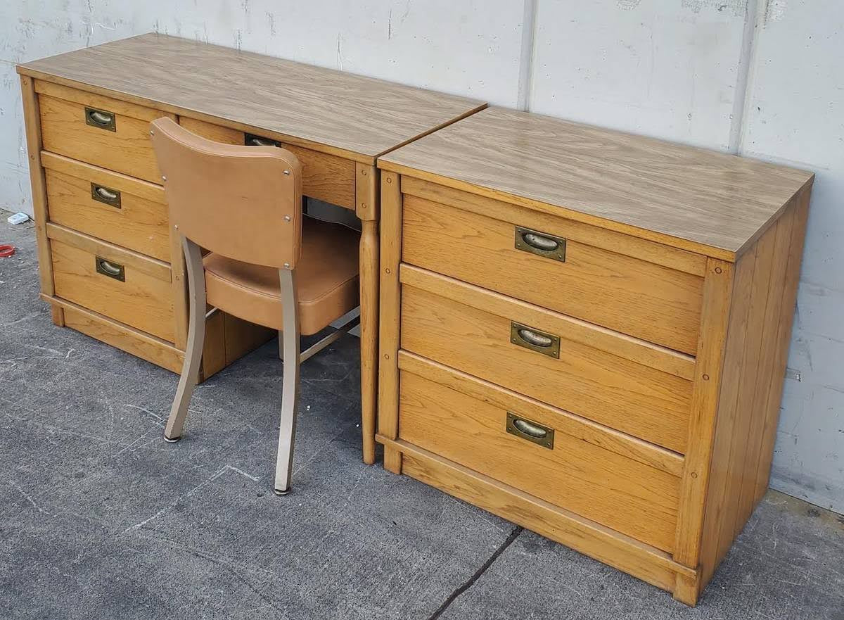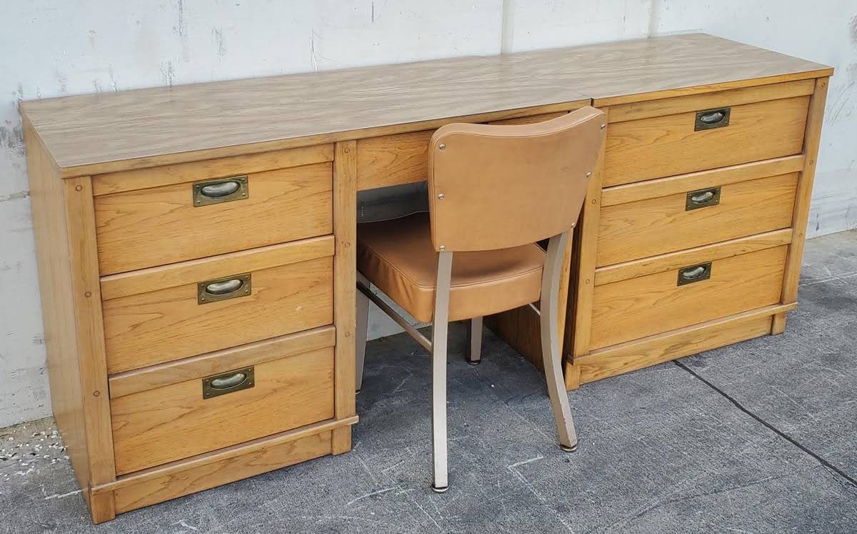 Hello we are selling a MCM campaign style Office desk 2 pcs. light wood with chair , it is in good condition.