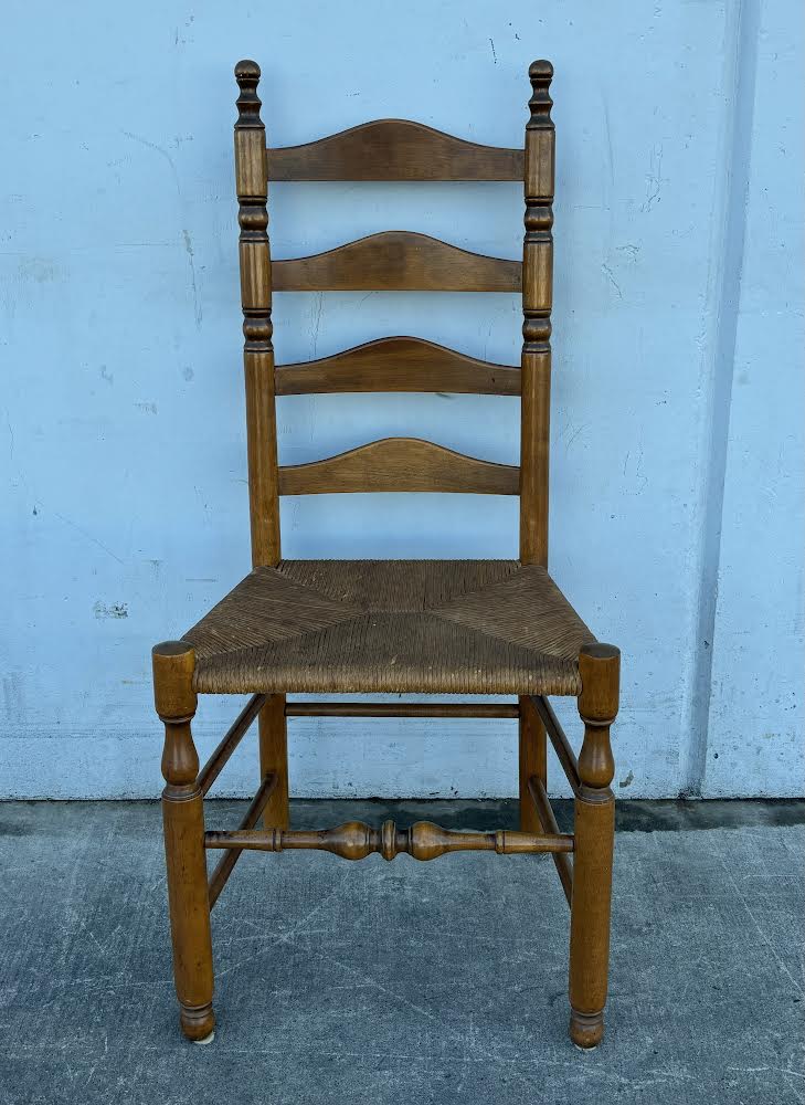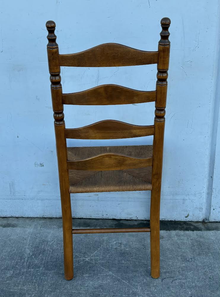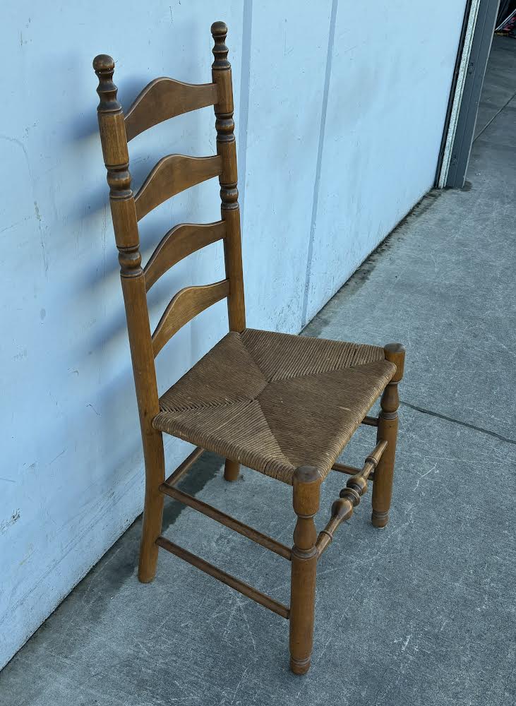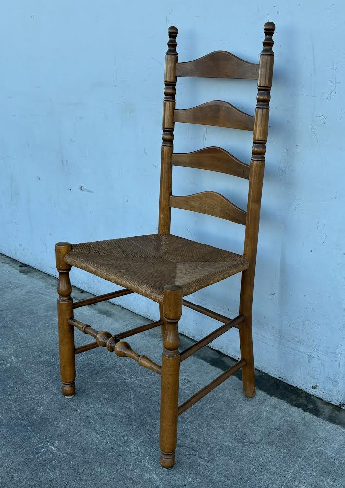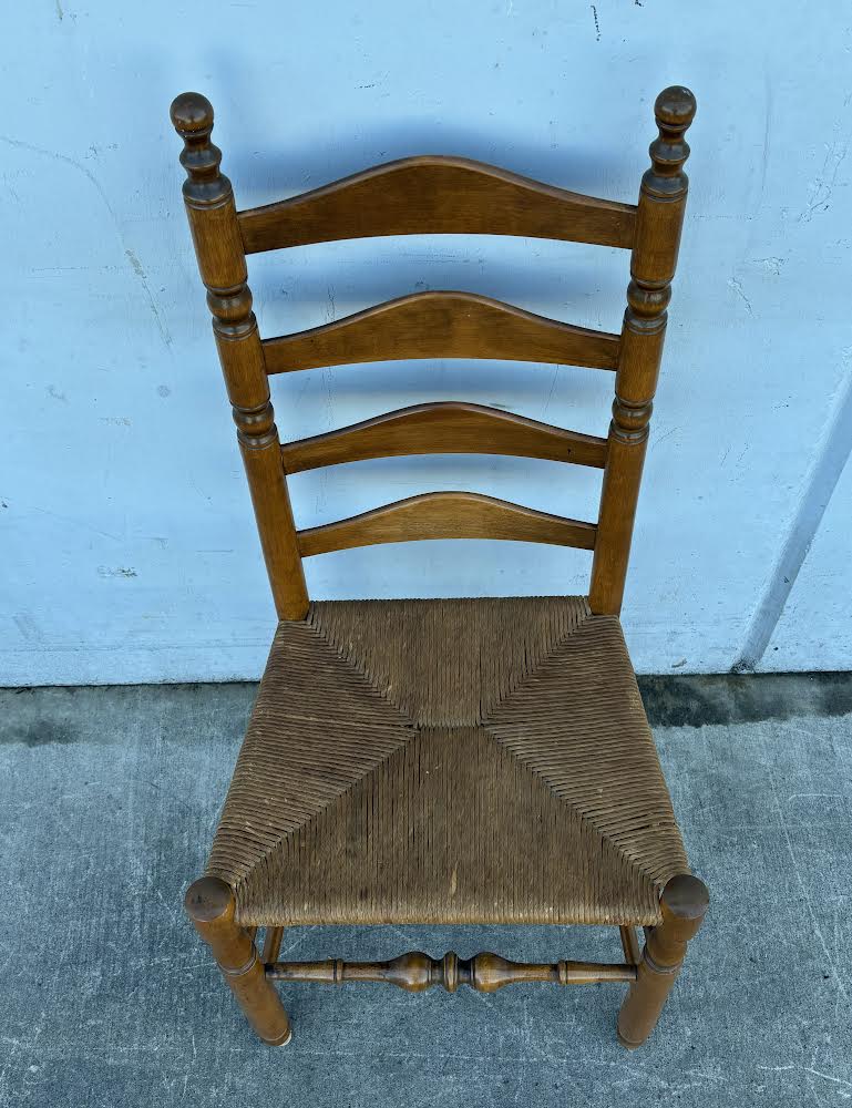 Hello we are selling a Mid 20th Century Maple Farmhouse Ladder Back Dining Side Chair , it is in good condition .