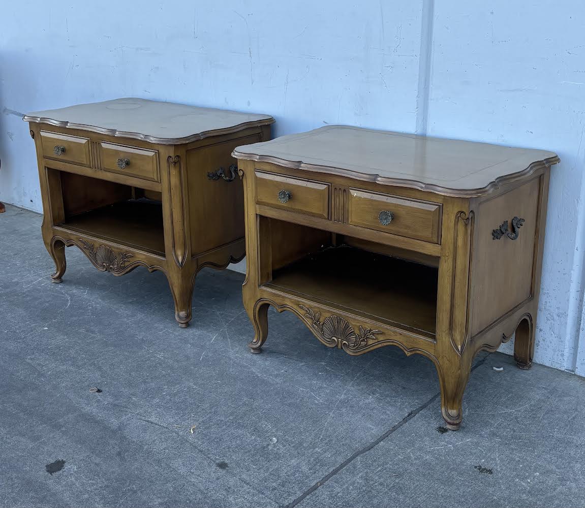 Hello we are selling a Pair French Bleached Oak Bedside Cabinets nightstands ,it is in good condition .