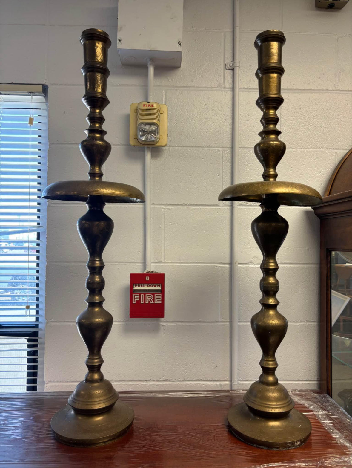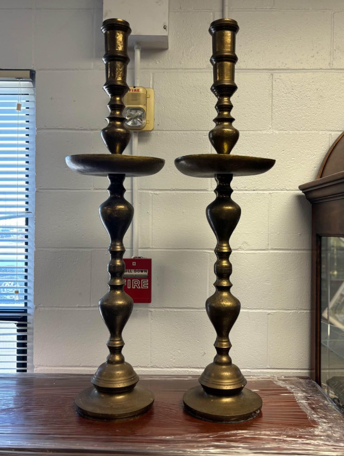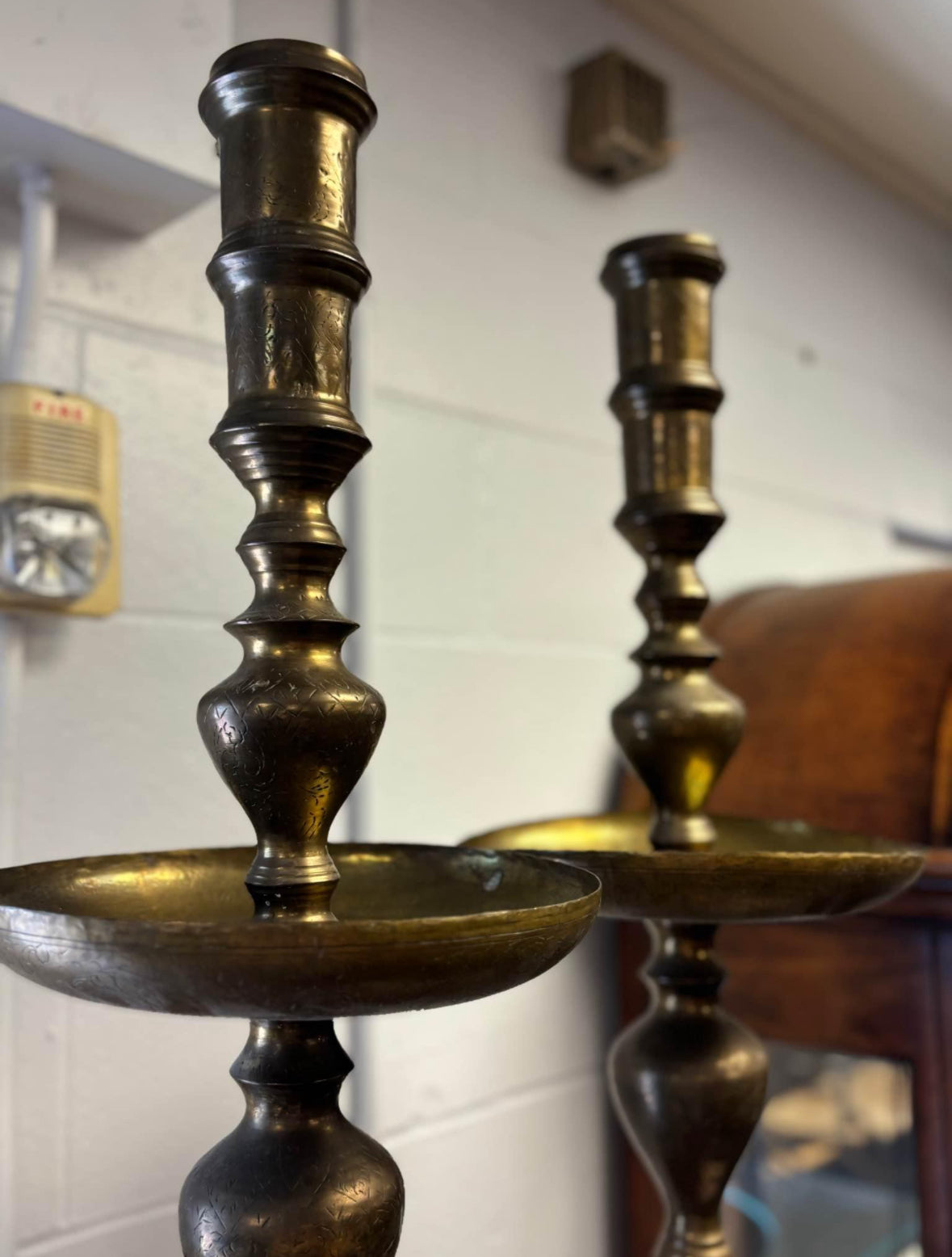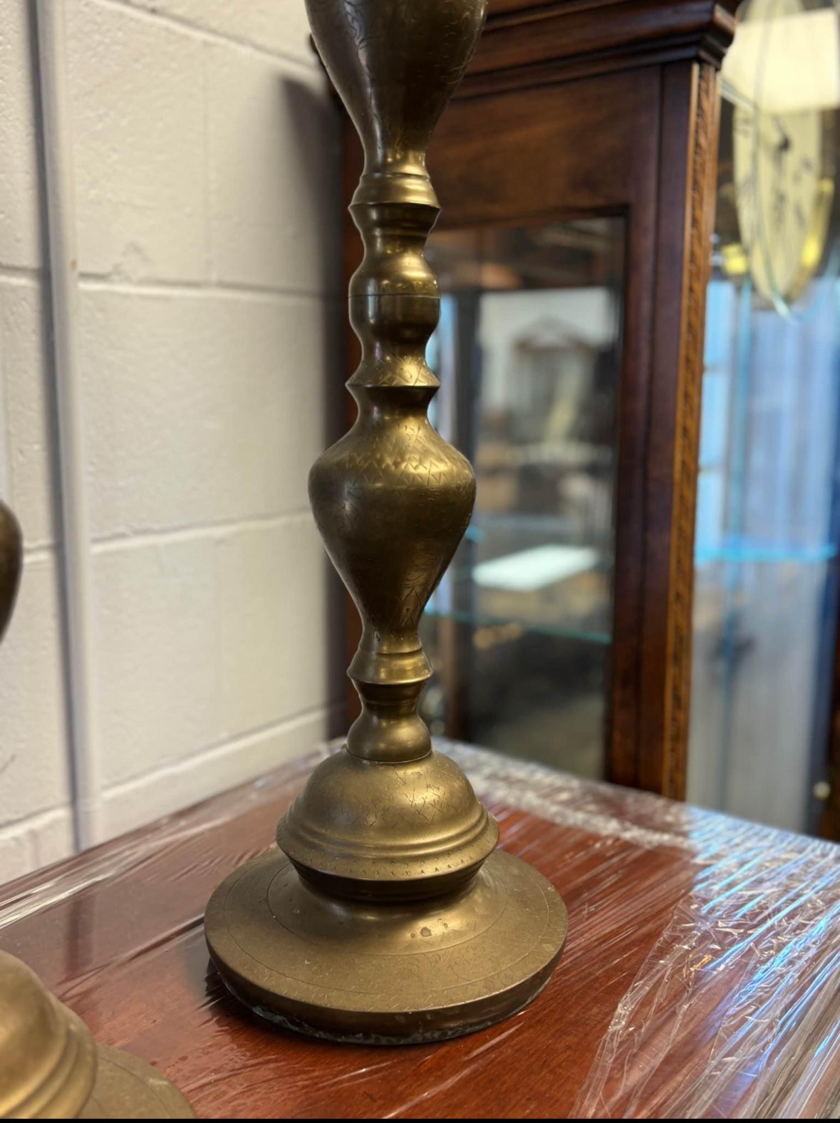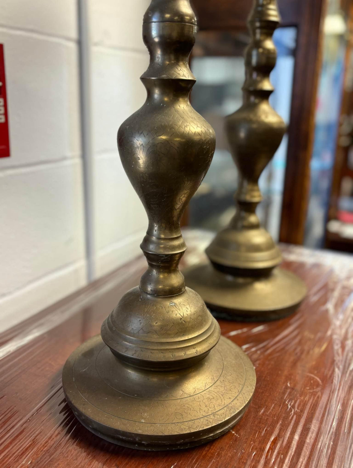 Hello we are selling a Pair Large Moroccan Brass Candle Stands ,it is in good condition .