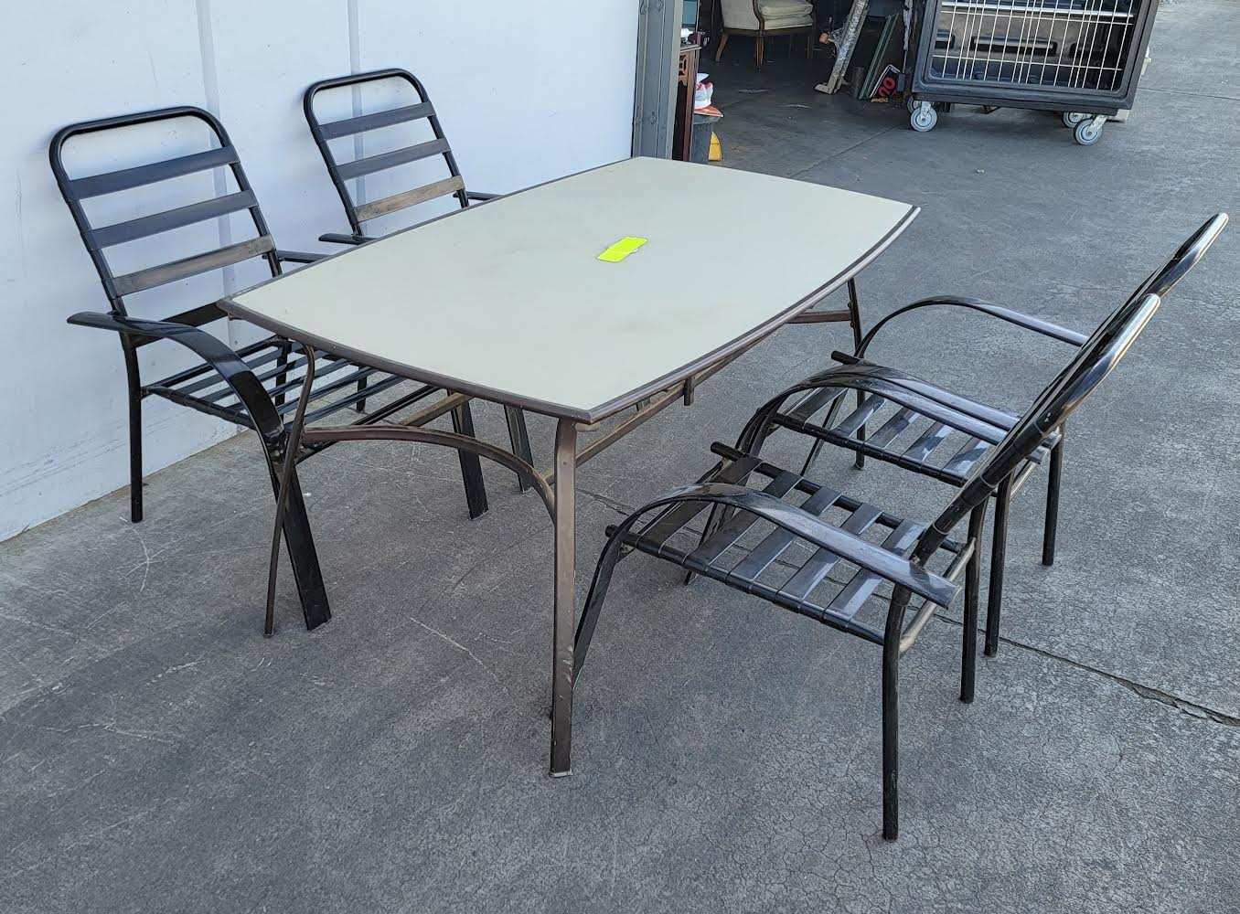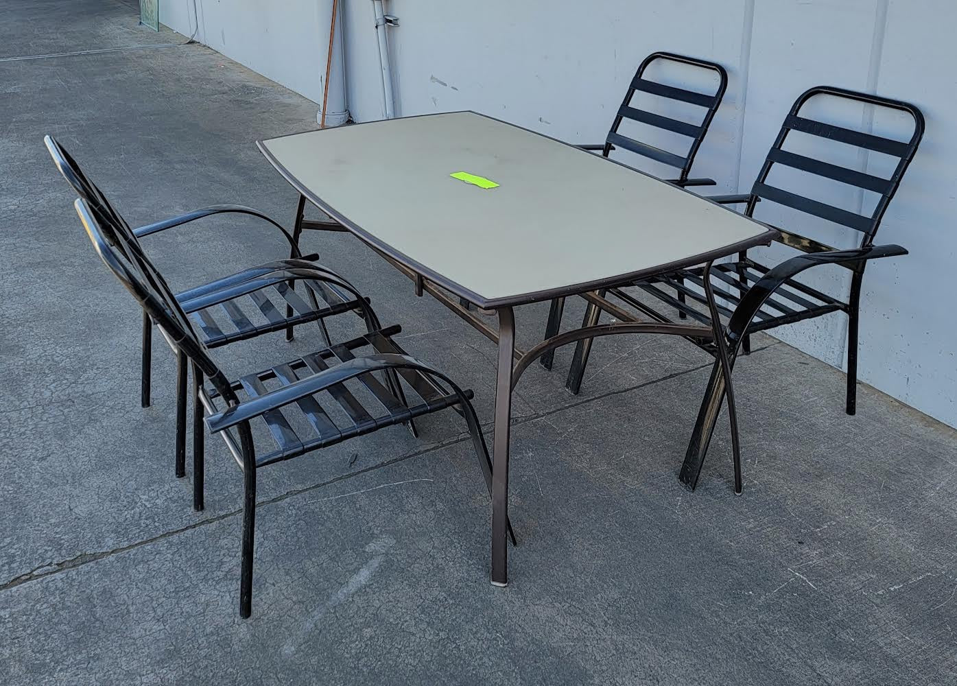 Hello we are selling a Patio /outdoor set rectangular table and 4 chairs black , it is in good condition .