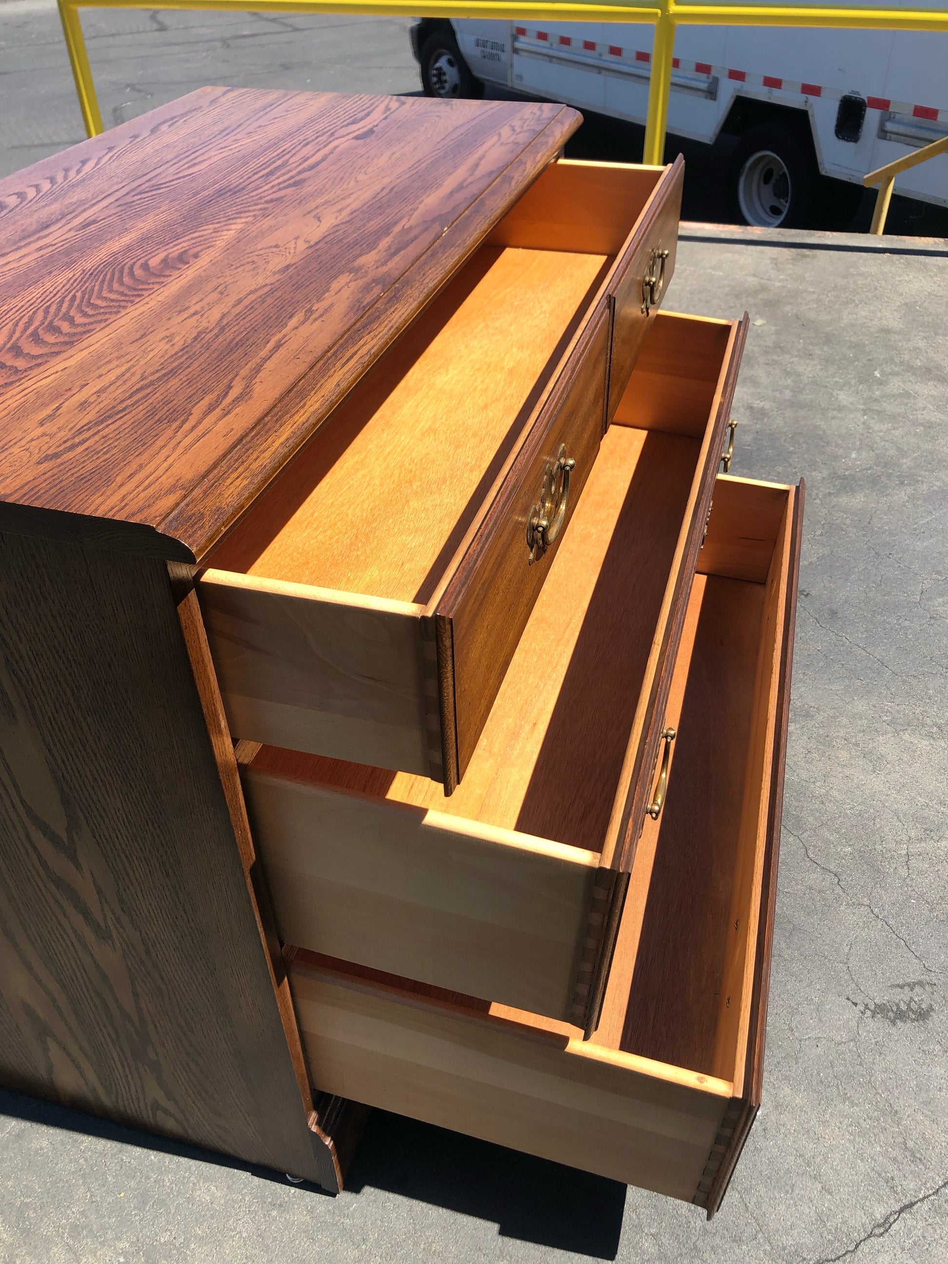 Hello we are selling a Pennsylvania house dresser/chest of drawers dark wood , it is in good condition.