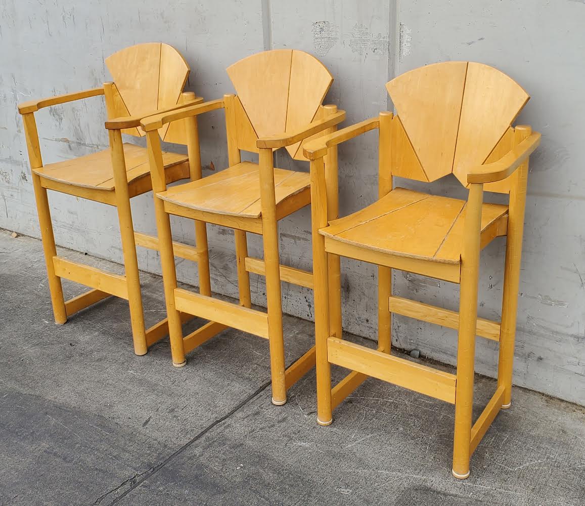 Hello we are selling a peter danko light wood (3) bar/counter armchairs/stools ,it is in good condition.
