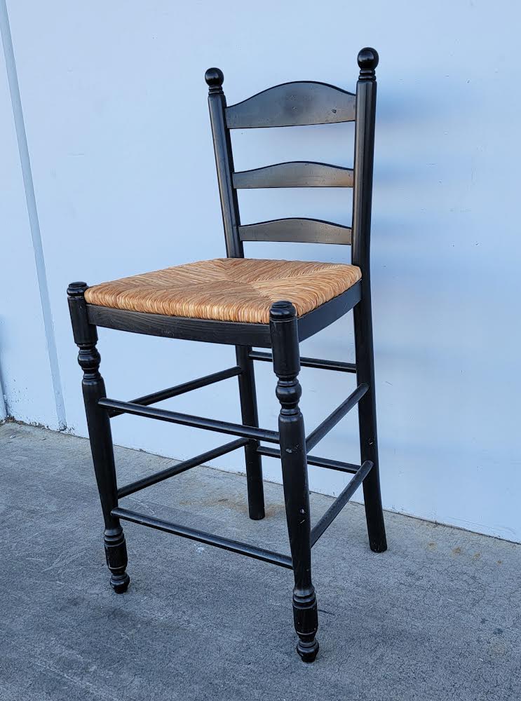 Hello we are selling a Pottery barn ladder back wicker/rush seat bar/ counter stool/ chair black , it is in good condition.
