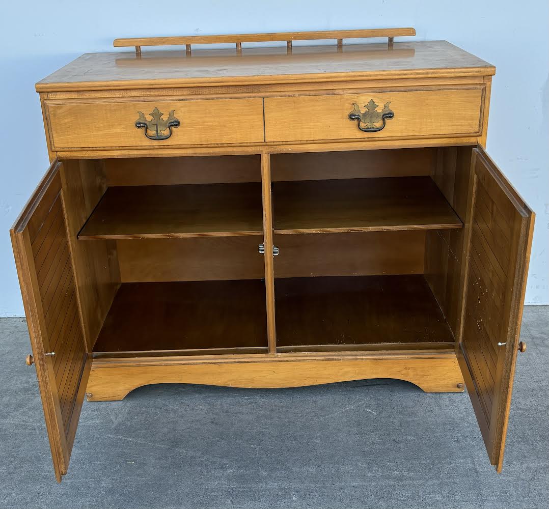 Priscilla Mid Century Vintage Nutmeg Maple Cabinet Louvered Shutter Doors