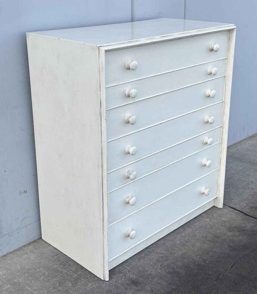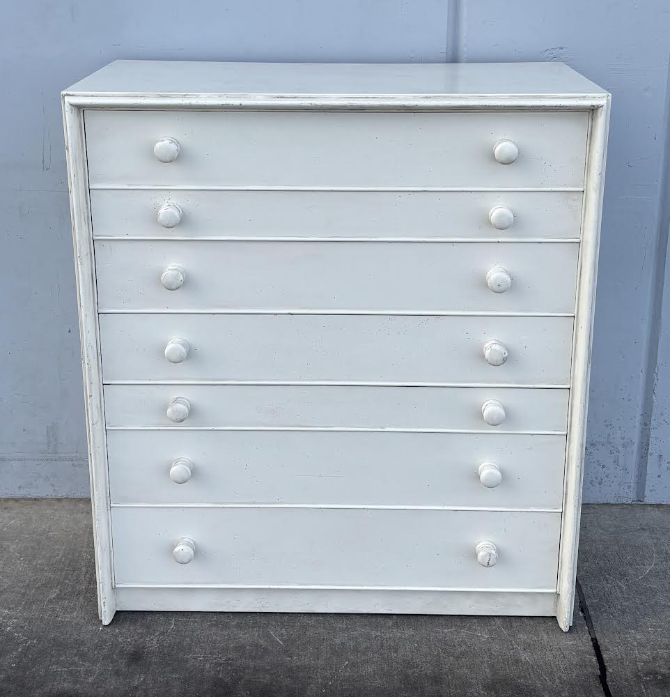 Hello we are selling a Tall White Wide Johnson Furniture Co Dresser , it is in good condition .