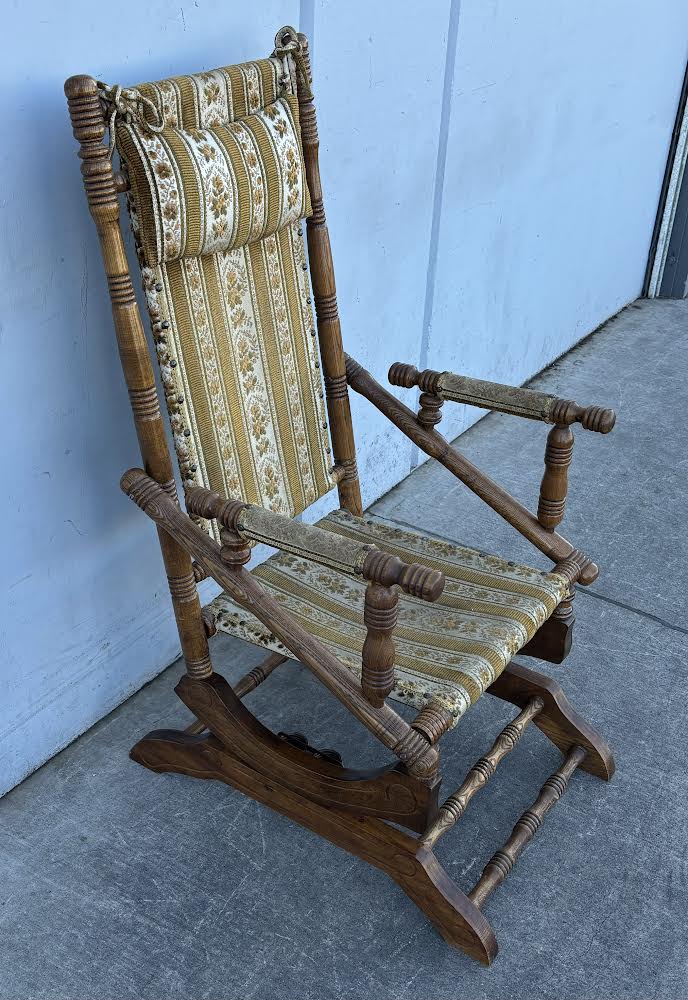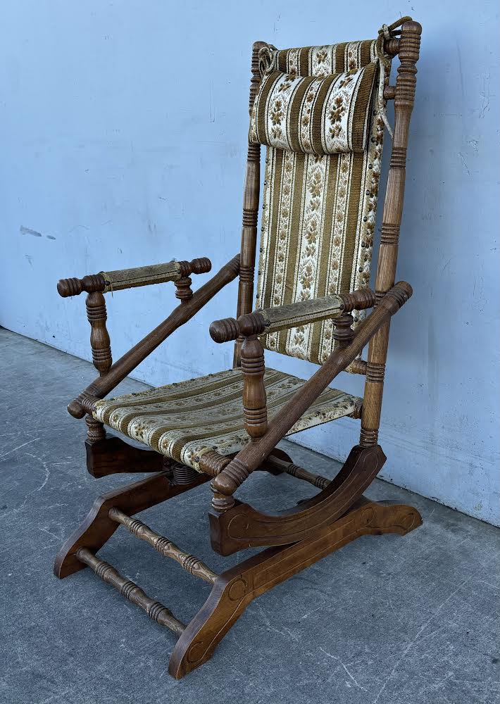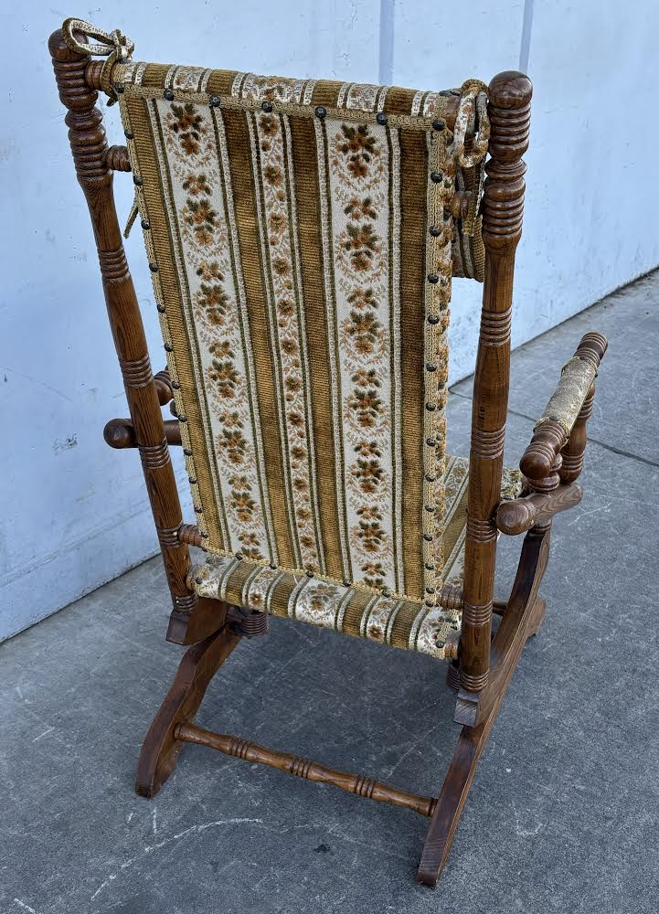 Vintage 19th Century Rug Upholstered Rocker/ rocking chair