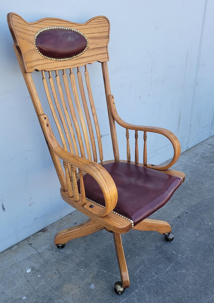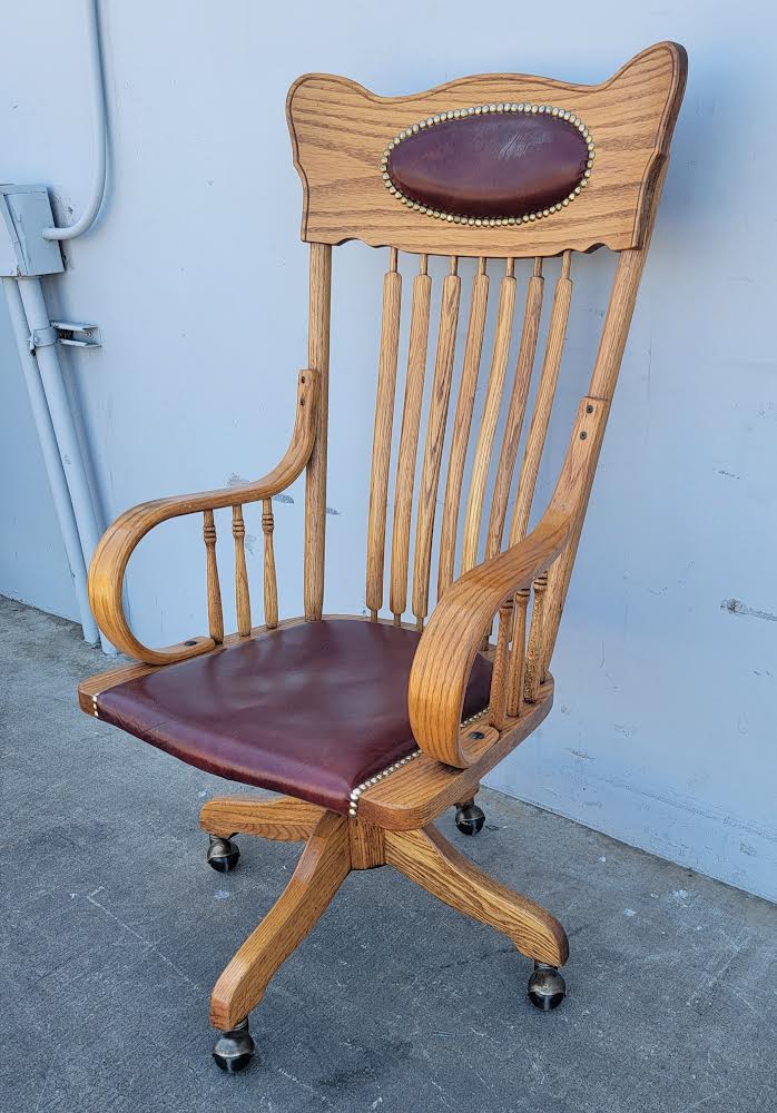 Hello we are selling a Vintage/antique swivel adjustable leather oak office armchair H.W. Hull & sons style , it is in good condition.
